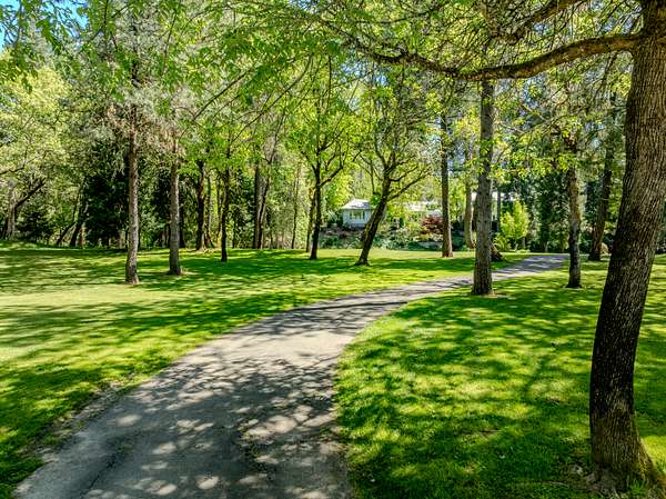 Barn and Guest Quarters~ The barn structure serves multiple purposes and is finished to a high standard. The main level (+/-860 SF) includes a workshop, storage areas, a vegetable prep kitchen, and a break room, along with a half bathroom. Upstairs (+/-740 SF), a second-story studio apartment provides flexible space with a full bathroom, suitable for guests, caretakers, or creative use.River Park ~ The property includes a stunning 1,500 feet of river frontage, forming its Western and Northern boundaries. The riverbank features a mix of low-bank access points, a sandy beach area, and a bountiful fishing hole. A paved walking path meanders for approximately half a mile through this private riverfront park, weaving through mature evergreen trees, open lawns, and the serene natural landscape.