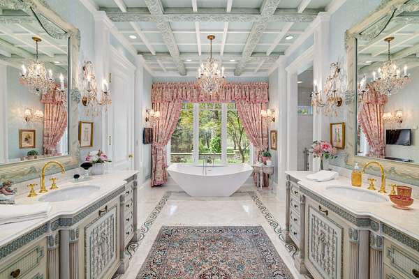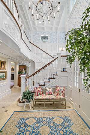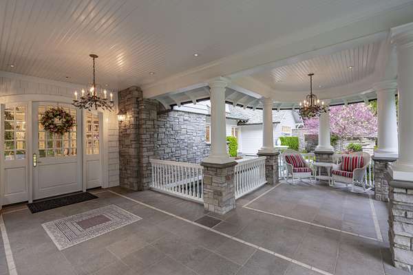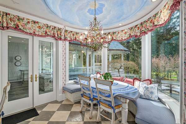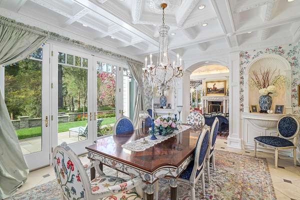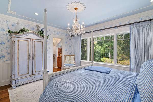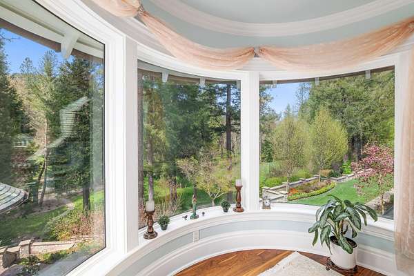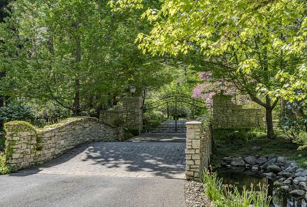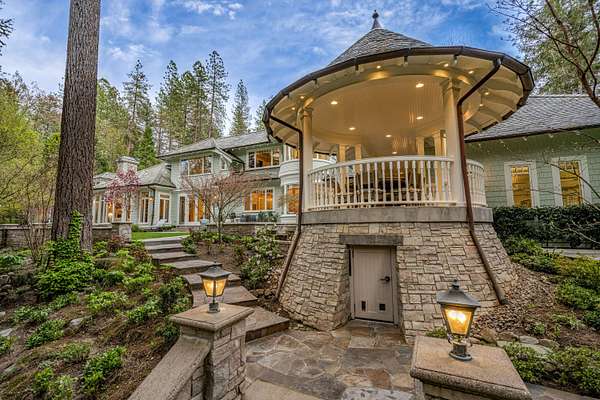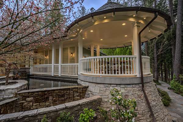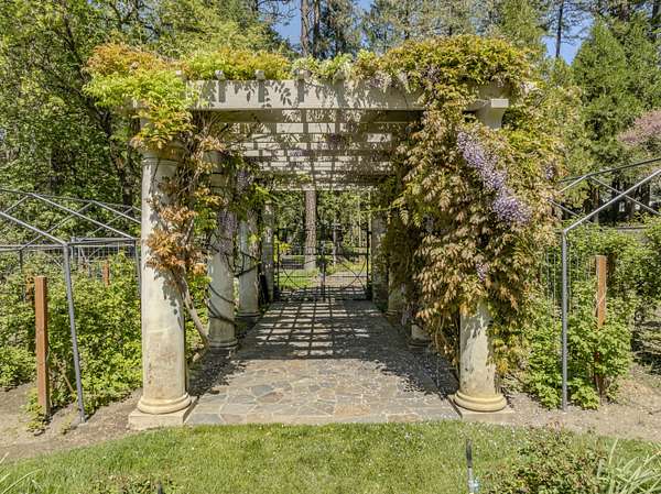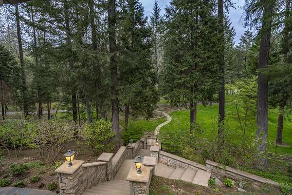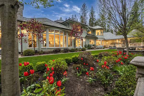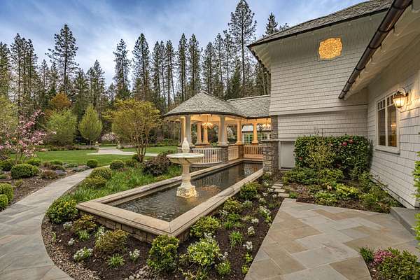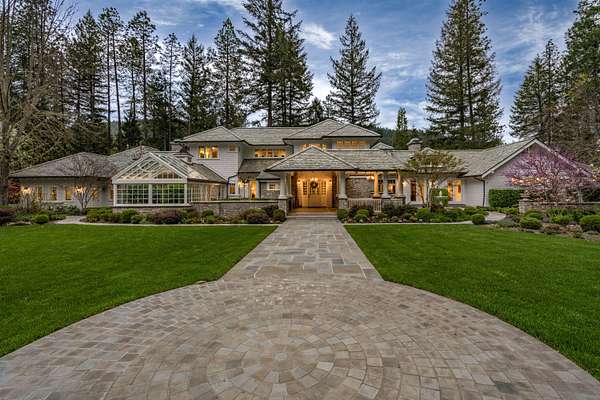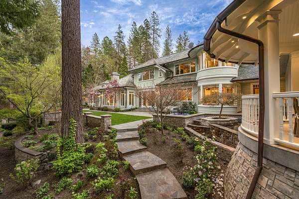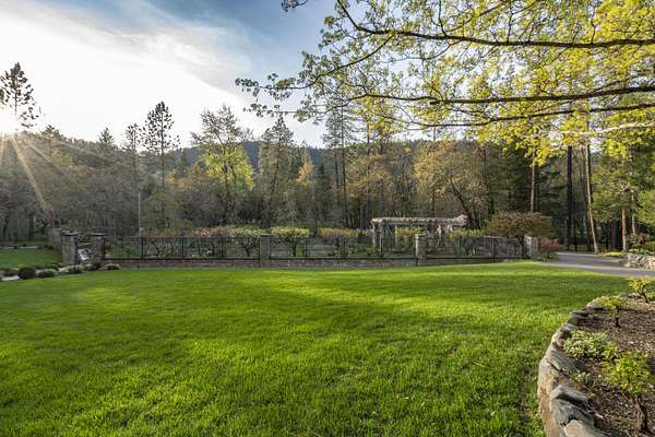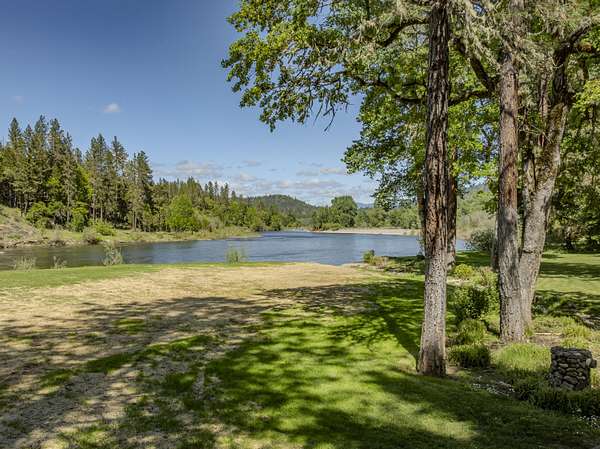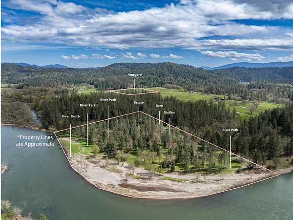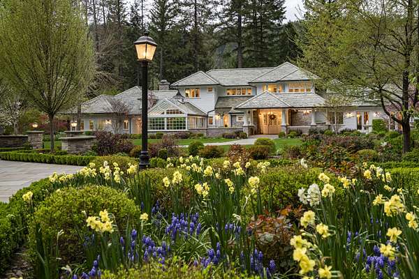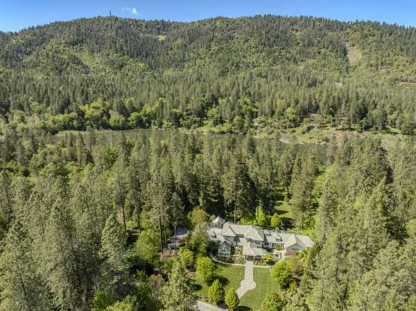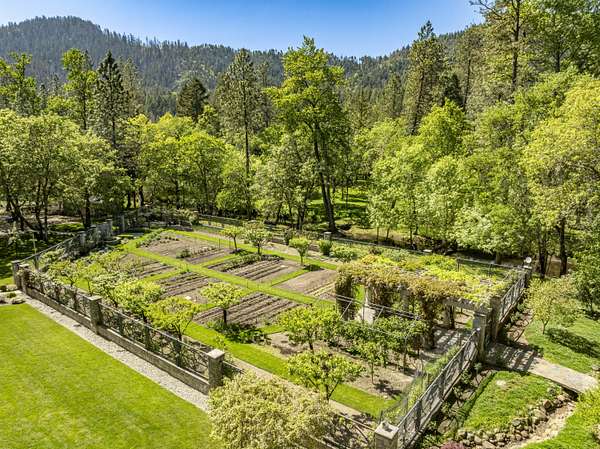 For the first time, this distinguished riverfront estate is made available for purchase. Greeted by a European-inspired bridge & water features, this exquisite English Country estate is elevated above & within the Wild & Scenic section of the Rogue River. Designed by Mike Casella, it blends Arts & Crafts details with Victorian elegance. Highest quality materials & craftsmanship throughout including imported slate roof, hand-carved Carrara marble fireplaces, & custom millwork. A well-appointed chef's kitchen, butler's pantry, root cellar, conservatory, library, main level primary suite with baja & steam showers, dressing room w/ extensive built-ins, and three vanities. Lush and irrigated, year-round color with 1000's of plantings. Numerous water features, 15000 SF garden w/ orchard, berries & vines. Detached gym/home office, finished 3 car garage, barn w/guest quarters, and private riverfront park.