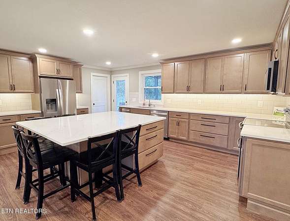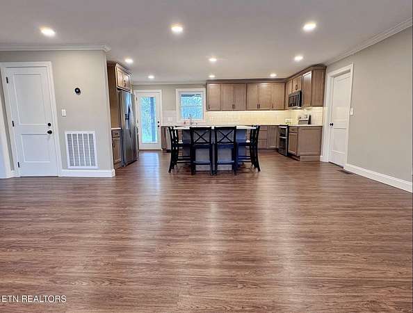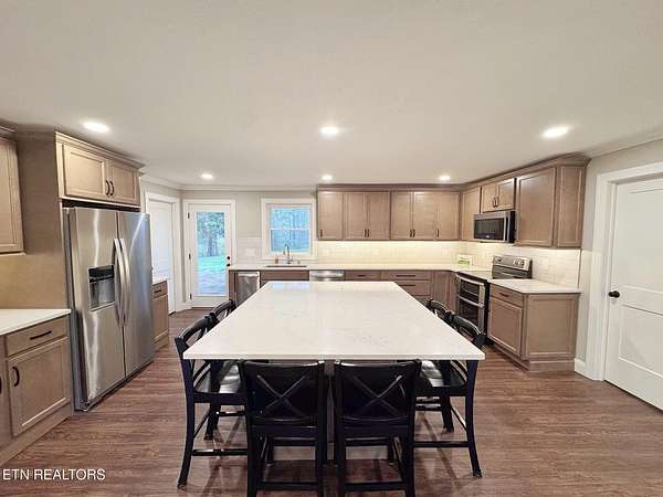Enjoy the best of country living with the convenience of being just minutes from I-75, shopping, restaurants, and North Knoxville Medical Center, all situated on 1.79 acres of unrestricted land. This beautifully renovated home offers easy main-level living and welcomes you with a large front porch featuring Trex decking--perfect for morning coffee or relaxing evenings while enjoying the peaceful surroundings. Inside, the updated kitchen is the heart of the home, highlighted by a massive island designed for gathering with family and friends. The open layout flows seamlessly into the living area, creating an inviting space for everyday living and entertaining. The split-bedroom floor plan provides added privacy, with the primary suite located on one side of the home and guest bedrooms on the other. Upstairs, a versatile office or additional bedroom offers the opportunity to add your personal touch, along with convenient extra storage space. Step outside to the newly constructed covered patio--an ideal spot for hosting family gatherings, grilling, or simply enjoying the outdoors. The unfinished basement offers parking for up to two vehicles and plenty of room for storage or a large workshop--perfect for hobbyists or anyone needing extra space. The expansive property also provides ample room for RV or boat parking and even the potential to build an additional workshop. With modern updates, flexible living spaces, and room to grow, this well-maintained property offers the perfect balance of comfort, convenience, and opportunity. EV charging station already on site along with smart lock and Nest thermostat. Schedule your private showing today and discover everything this property has to offer.