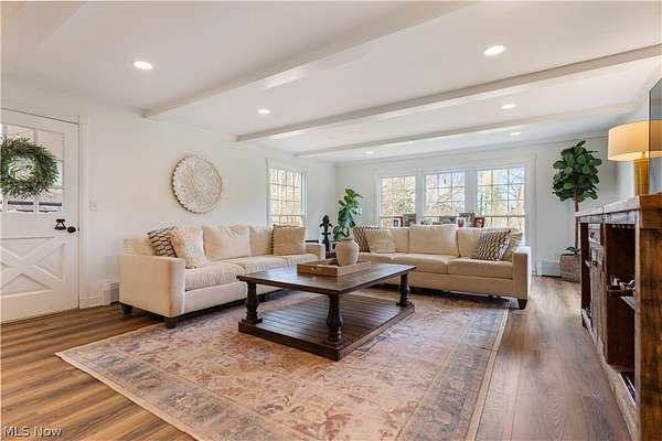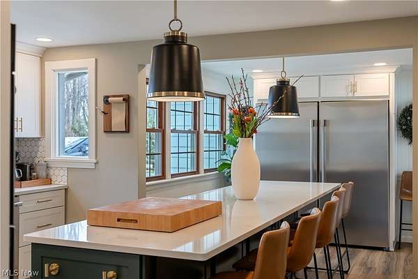 Nestled atop a private, wooded hilltop on nearly three acres, this stunning farmhouse epitomizes country elegance, seclusion, and modern sophistication. A welcoming covered front porch leads into a light-filled foyer framed by oversized floor-to-ceiling windows, flowing seamlessly into the great room and dining area. The great room exudes warmth and character with a woodburning fireplace, striking beamed ceilings, and direct access to a screened porch overlooking the serene wooded setting-perfect for quiet mornings or entertaining guests. The heart of the home, a grand fully remodeled kitchen, is designed for both function and gatherings, featuring a spacious island, farmhouse sink, pot filler, beverage cooler, and abundant storage. An oversized office with a second fireplace, built-in bookshelves, and beamed ceilings provides a luxurious space for work, reading, or study. Upstairs, the owner's suite offers a serene retreat with a beautifully remodeled full bath, complemented by a showstopper second-floor laundry room and walk-in closet. Three additional generous bedrooms and a full bath complete the upper level. The finished lower level expands living and entertaining possibilities with a recreation room featuring a fireplace, wet bar, full bath, and workshop. Outdoors, a private entertaining area with a firepit, mature trees, and a barn provides endless versatility for storage, hobbies, or personal projects. Additional highlights include a dog feeding station in the mudroom, abundant storage throughout, and timeless farmhouse charm at every turn. Just minutes from shopping, dining, and everyday conveniences, this extraordinary home combines hilltop privacy, country living, and modern functionality, offering four bedrooms, three full baths, and one half bath. Schedule your showing today to experience this one-of-a-kind retreat!