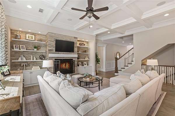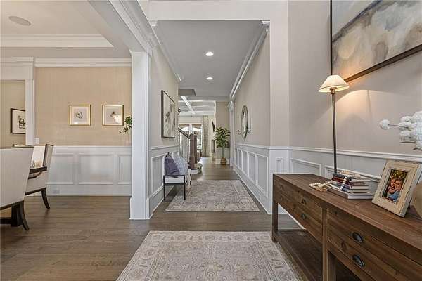 Beamed Ceilings, Bookcases, Central Vacuum, Coffered Ceiling(s), Crown Molding, High Ceilings 10 ft Main, High Ceilings 9 ft Lower, High Ceilings 9 ft Upper, Recessed Lighting, Smart Home, Walk-In Closet(s), Wet Bar