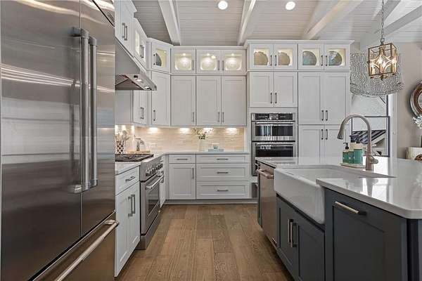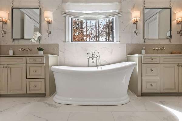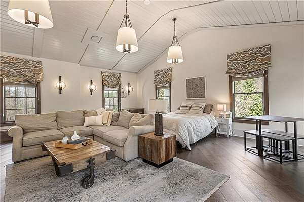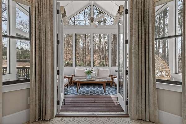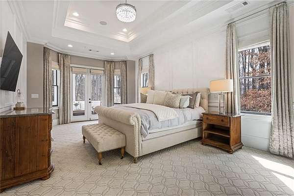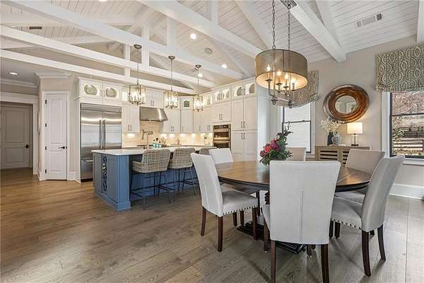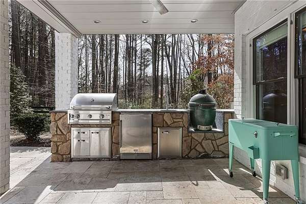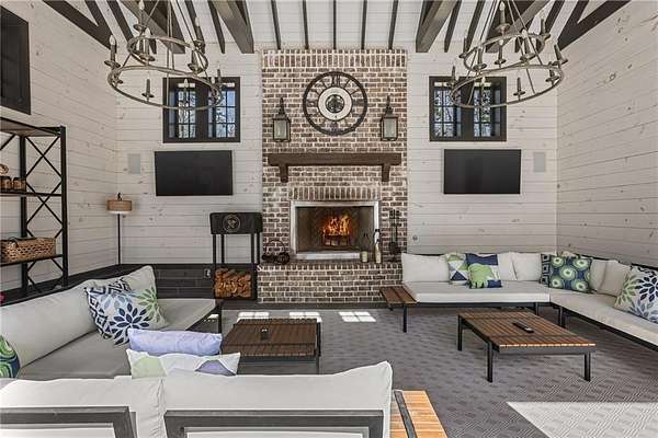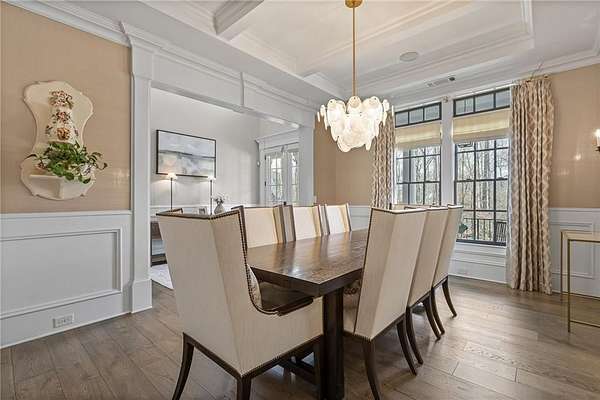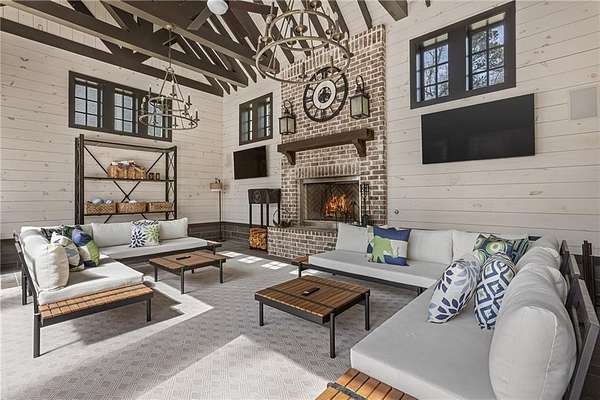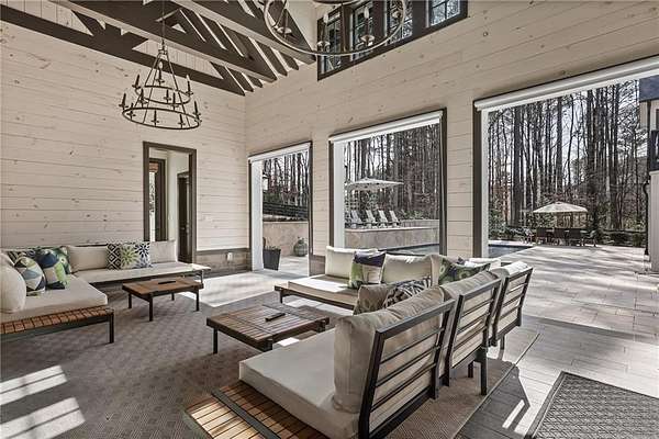 Experience the elegance of a better-than-new construction on 2.45 acres in Milton's highly sought-after The Grove neighborhood. This timeless brick home perfectly blends modern smart home technology and classic design, enhanced by private, breathtaking outdoor living spaces. The home commences with a welcoming covered front porch and double entry doors opening to the inviting foyer. Off the foyer, an elegant dining room features beautiful millwork, hardwood floors and a butler's pantry with a wet bar connecting to the kitchen. The heart of the home is the stunning gourmet kitchen outfitted with an oversized island, white double-stacked cabinetry, a pot filler over the range and JennAir stainless steel professional-grade appliances. The kitchen flows seamlessly into a fireside dining area and the adjacent family room. A half bathroom, a laundry room and a mudroom with access to all four garages are easily accessed from the kitchen. Enjoy designer lighting, custom window treatments and meticulously crafted details, creating a warm and inviting atmosphere. Relax and unwind in the primary suite, conveniently located on the main level for easy living. Elegant and refined, the bedroom features floor-to-ceiling judge paneling and French doors to a private sun porch overlooking the backyard. The en suite bathroom impresses with separate vanities bisected by a freestanding bathtub and a seamless glass shower with multiple showerheads, two product niches and a bench. The sun-lit walk-in closet boasts a packing island and extensive built-ins for keeping everything organized. Upstairs, enjoy a media room with built-in off the landing, four bedrooms and three bathrooms. The fully finished basement adds even more living and entertainment space with a second family room, a kitchenette, a game room, a bedroom currently used as a gym, a bathroom and an office with a coffered ceiling. Venture outside to the incredible outdoor living area, which includes a fantastic pool, spa, large pool deck, a covered patio with a grilling station and an enviable pool cabana. This indoor-outdoor living space consists of a large sitting area, a masonry fireplace and a pool bathroom. The backyard is completely fenced and includes a grassy play area. The living spaces continue over the detached two-car garage, which includes a carriage house studio apartment with a full bathroom. Ideally located, The Grove offers proximity to top-rated schools, scenic trails and retail destinations in Crabapple, Milton, Alpharetta and more. Live in the heart of Milton on this stunning property offering the perfect balance of privacy and convenience. Welcome home!