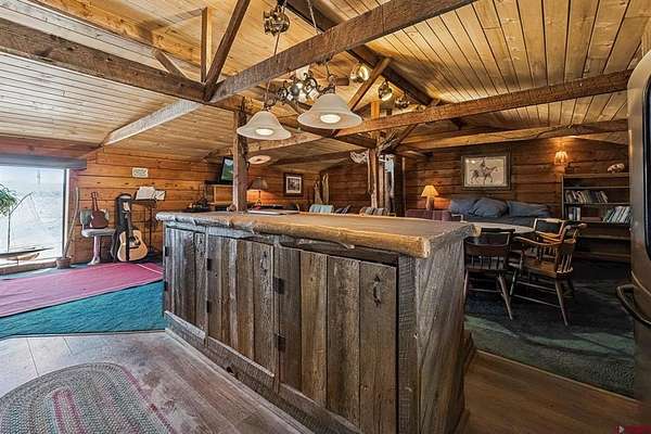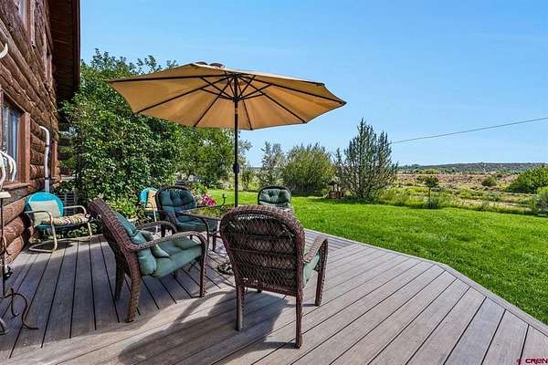 Justin D Osborn, The Wells Group of Durango, LLC, O: 970-946-3935, justin@wellsgroupdurango.com, http://southwestcoloradoranchbrokers.com/: 20 acres with senior water rights, a year round pond, 3 bedroom log home, shop, guest quarters, and full RV hook-up. No HOA. Located at 6150' elevation with excellent southern exposure, and well maintained paved county road access. Water rights consist of 27 shares of Citizens Animas Ditch, the best irrigation ditch in Durango. This water will typically run through the Fall when all the other irrigation ditches around town are dry for the year. In-ground sprinkler system keeps the yard green all summer. Mature shade trees, along with air conditioning, keep this house cool in the hot summer months. The 30' x 60' building includes a 30' x 30' shop, a 30' x 30' loafing shed, and a 900 sq ft barn apartment. Southern Ute Indian Tribe (SUIT) owns the 700 acres across the river to the east, so it's likely this will never be developed. Annual taxes are $1,918. See the virtual tour link for a 3d floorplan of the home, as well as an interactive map showing the property boundaries.