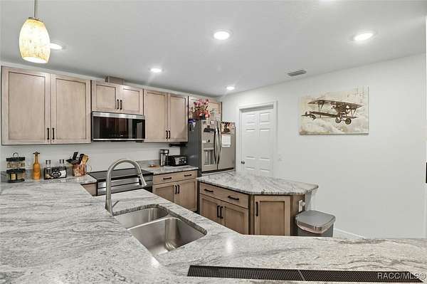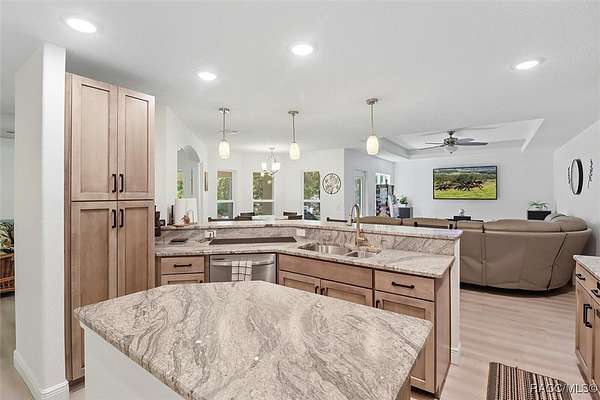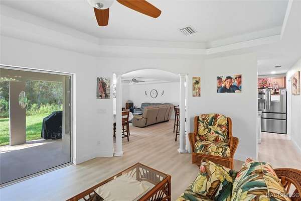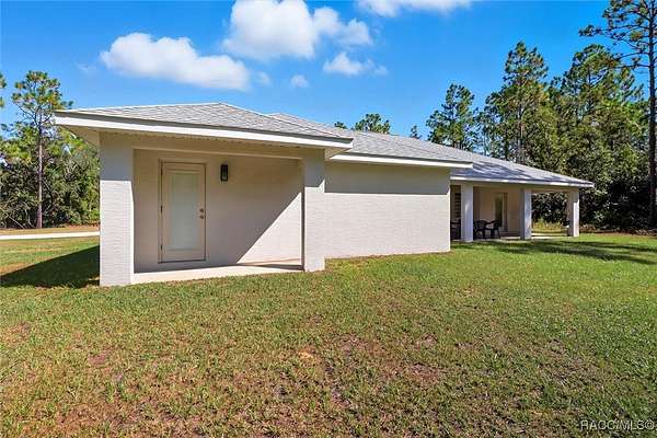 Welcome to your dream property in the heart of Pine Ridge Farms! Built in 2024, this beautiful 3 bedroom, 2 bathroom home combines modern design with peaceful country living on 4 private acres. Step inside to an open and airy floor plan featuring a spacious great room, custom leather look granite countertops throughout, stainless steel appliances in the beautiful kitchen with a large island area. The living spaces are enhanced with elegant trey ceilings, adding depth and character to the modern design. Unwind in the primary suite, complete with a private en suite featuring a walk-in shower and double vanities for comfort and an exterior door. The second bathroom features a jetted walk-in tub, designed for safety, comfort and relaxation. Outside, you'll find endless possibilities with your 4-acre property! Room for horses, a pool, or simply enjoying the quiet and natural surroundings. Pine Ridge Farms is known for its large lots with horse trails close to this home. Now is your chance to own a brand-new home in one of Citrus County's most desirable equestrian friendly community.