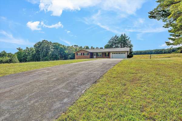 Welcome to peaceful country living on 2.4 acres! This charming brick ranch offers flexible living with the potential for completely separate living spaces on both the entry level & the lower level. The main level features a primary suite, two additional bedrooms & an open kitchen, dining, & family room with a cozy fireplace-perfect for gathering. A spacious 2-car garage offers plenty of room for vehicles, tools, & storage. The full walkout lower level is already equipped with a kitchen, bedroom, bathroom & spacious family room, making it ideal for separate living quarters, multi-generational living or comfortable guest space. Enjoy breathtaking mountain views, serene sunrises, & glowing sunsets from the deck or patio while soaking in the privacy and beauty of this exceptional setting!