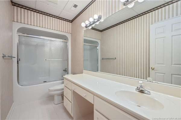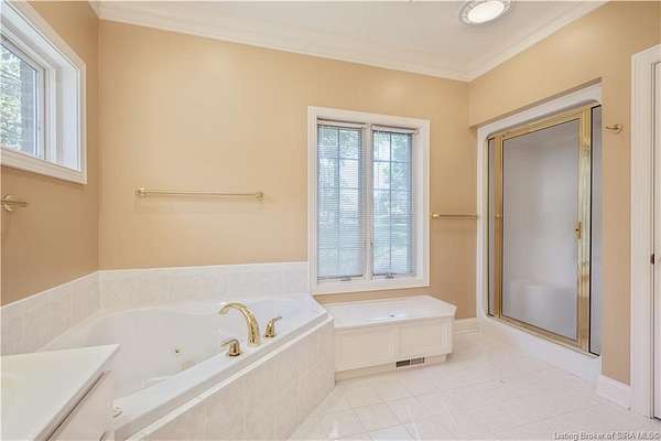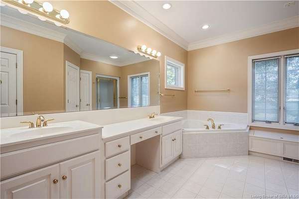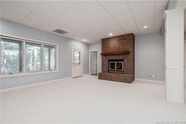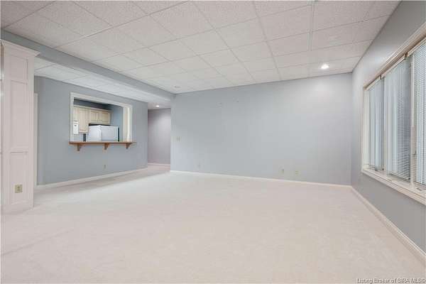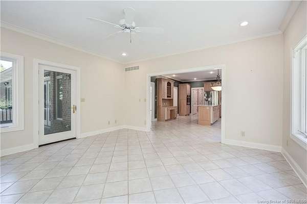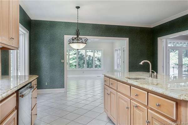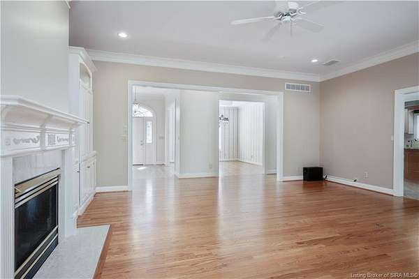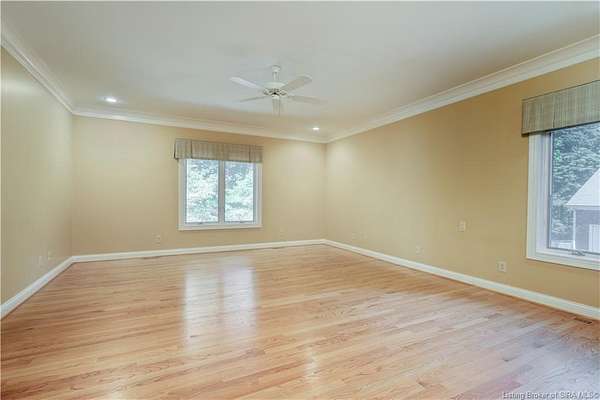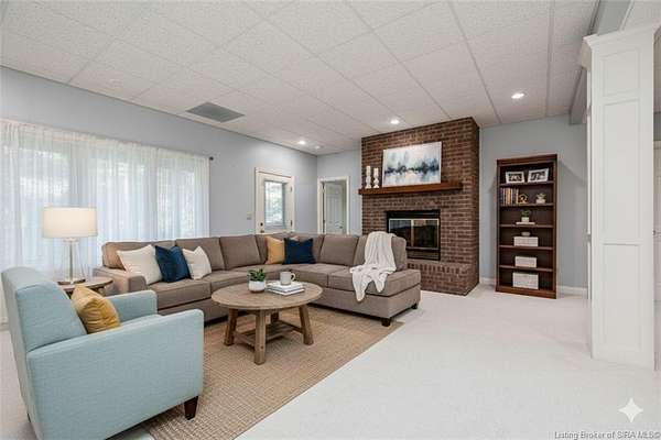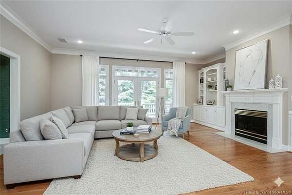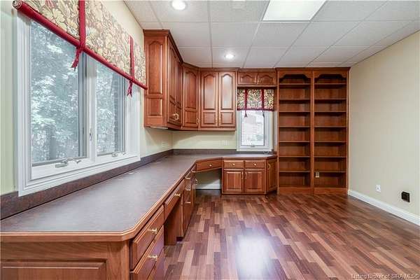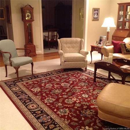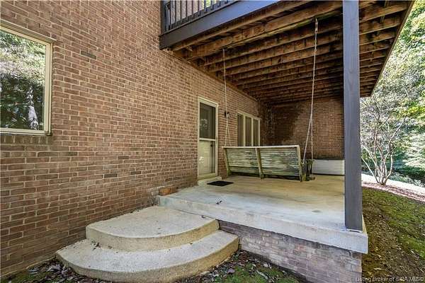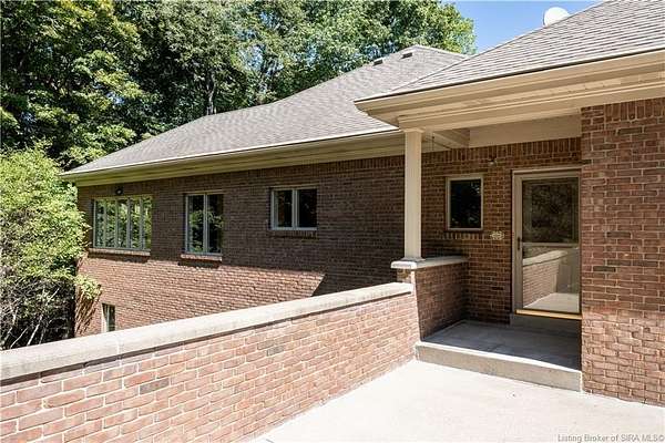RELISTED AT A GREAT NEW PRICE! CUSTOM BUILT home on a secluded 3.9 acre lot in the desirable BENT CREEK SUBDIVISION in Floyds Knobs! Tucked back on a cul-de-sac lot, this 4 bedroom 3 bath ranch offers a full, rear walkout lower level with a second kitchen and laundry hookups, which could make an additional living quarters or great space for guests. Custom features in this one owner home built by Gary Longest, include crown molding throughout the first floor, 3/4" hardwood flooring, 2x6 walls, SUNROOM off the 20'x16' kitchen featuring a large island with prep sink, granite countertops, and dining area, great room highlighted by built-ins, gas fireplace and surround sound speakers with French doors leading to the private deck, central vac, security system, and safe room under the front porch. Spacious primary bedroom suite offers an air jetted tub, separate shower, double vanity, and 2 walk-in closets! The walkout lower level has it all- 3 bedrooms, full bath, dedicated office with a built-in desk/cabinets, 9' ceilings, fully equipped kitchen, woodburning brick fireplace, and a finished workshop that could also be used for additional storage space. The 26' wide garage gives you a little extra room, and there is a nice area off the garage and exterior entrance with a laundry room, 1/2 bath, pantry, and coat closet. This is a great opportunity to own a quality-built home sitting on a 4 acre lot in Floyd Central School District and only minutes to Floyds Knobs Elementary!