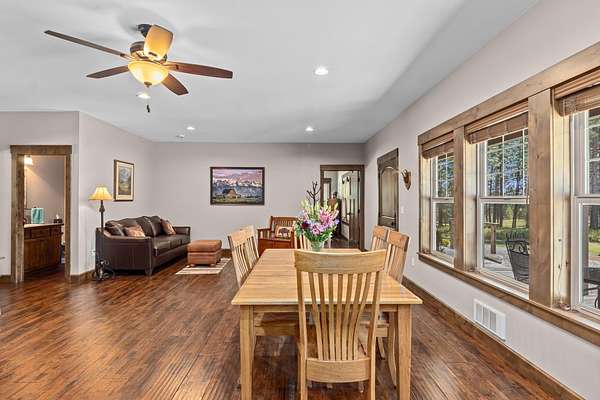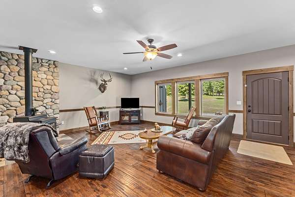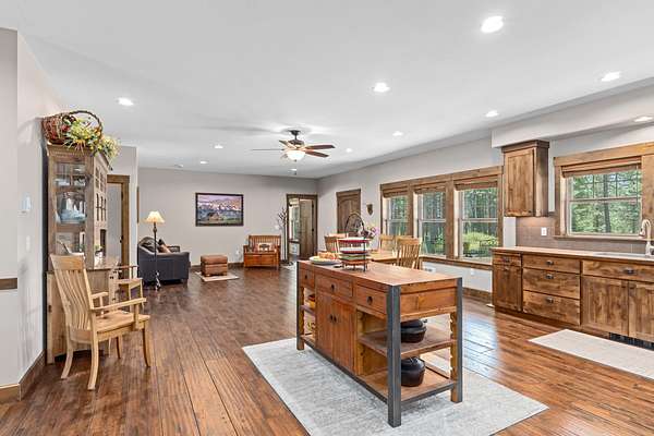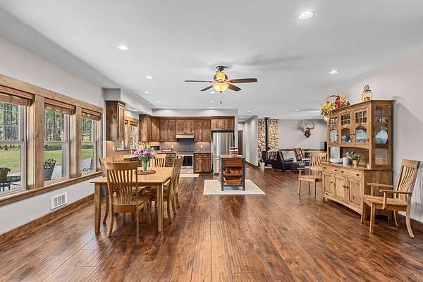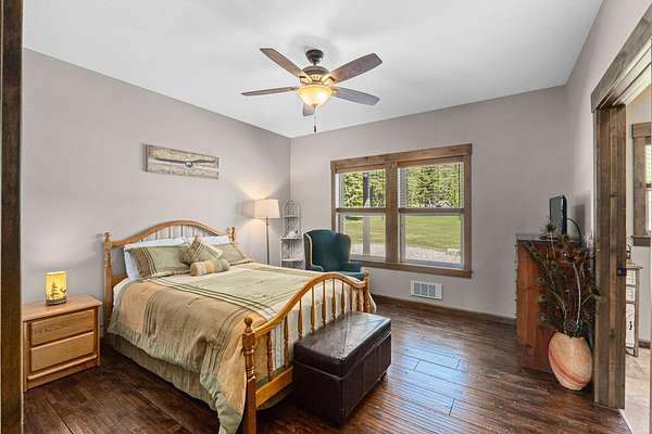 Rare find! Beautiful home on 80 acres with massive shop! 3 bedroom 4 bathroom home. All the bedrooms have their own bathroom. Large primary suite with large bathroom, free standing tub, tiled shower, and double walk in closets. Knotty alder kitchen cabinets and trim throughout the home. Oak hand-scraped finish hardwood flooring. 9 ft ceilings throughout the home. Oversized attached garage is approx. 47x42 and finished. Massive immaculate 60x80 shop! Insulated and drywalled, Hardie board siding to match the house, two post 12,000 lb vehicle lift, 200 amp power, AND a 1 bed 1 bath apartment. 40x60 pole building with 16ft sidewalls with 200 amp power and water at the building. This private and secluded property is mostly treed with about 20 acres of farmland (currently grass hay). Trail system throughout the forested areas.