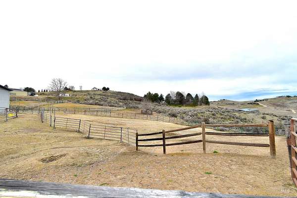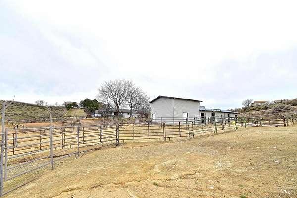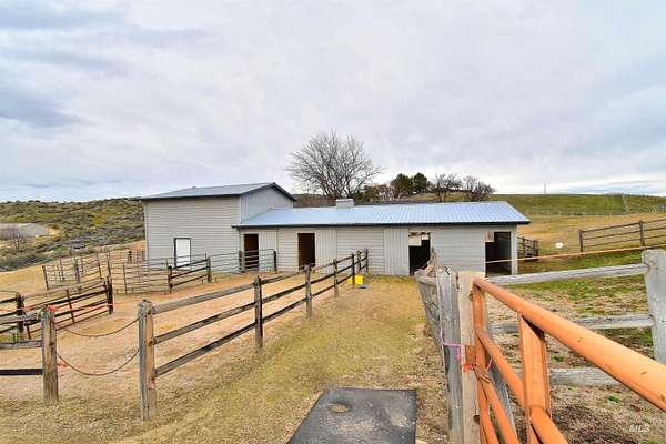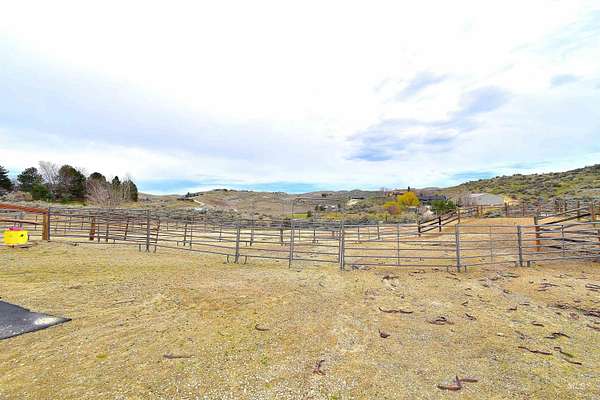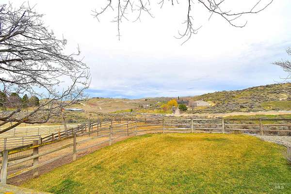Single-level living in the coveted foothills of Eagle - offered for the very first time by its original owner. This thoughtfully designed 5.6-acre horse property captures sweeping foothill views while delivering privacy, functionality, and convenience just minutes from town. Designed with the equestrian in mind, the property features multiple fenced pastures, a well-appointed barn with automatic stall waterers, dedicated hay storage, tack room, and ample trailer and RV parking. Water rights and an efficient layout make this acreage both practical and easy to maintain. The home and grounds have been meticulously cared for, with mature landscaping that enhances both beauty and seclusion. A whole-house natural gas generator ensures uninterrupted power to the entire property - providing peace of mind in every season. With no HOA and only minimal CCRs, this property offers rare flexibility in a premier foothills setting. Ideal for multigenerational living, it blends the serenity of country life with close proximity to downtown Eagle's amenities. Located in the highly desirable Stillwell Estates area, surrounded by vineyards and open space, the property is rich with wildlife - deer, turkey, quail, and more roam the rolling foothills. This is a rare opportunity to own an affordable acreage in one of Eagle's most exclusive and private foothill communities.
