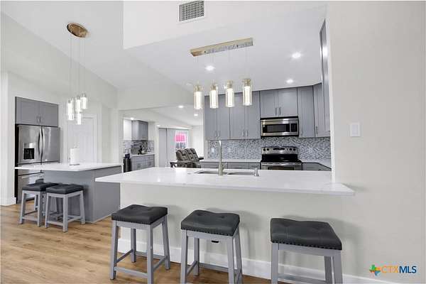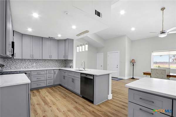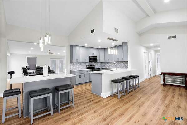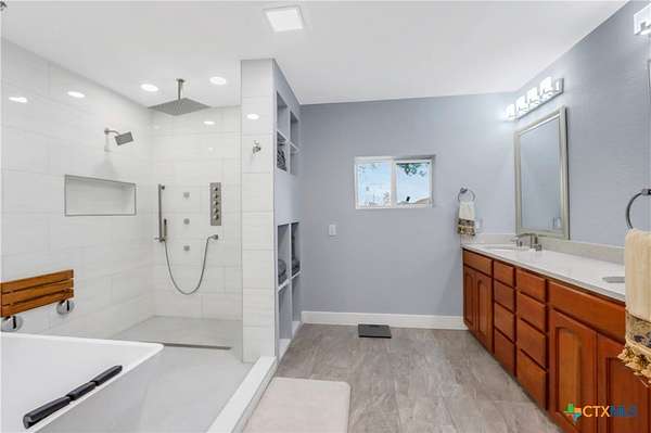 - Breakfast Bar, Ceiling Fans, Double Vanity, Jetted Tub, Kitchen Family Room Combo, Kitchen Island, Living Dining Room, Multiple Living Areas, Pantry, Separate Shower, Sun Room, Tub Shower, Wet Bar