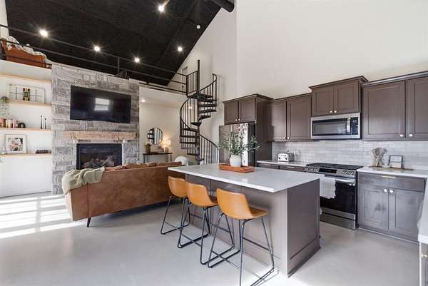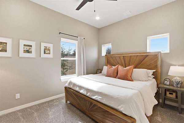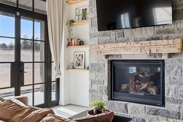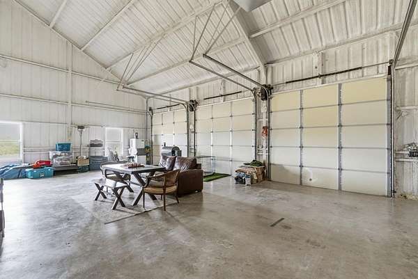 Discover contemporary living in this 3 bed, 2 bath barndominium on 4± acres, featuring a serene 1-acre pond. The sleek living area offers comfort and style, adjacent to a modern kitchen. The master suite boasts an elegant en-suite bathroom with an awesome walk in closet featuring a stackable washer and dryer. A second bedroom and bathroom downstairs, as well as, an upstairs flex room that could be used as a bedroom, office or an additional living area give a great space for kids or guests. Additionally, enjoy the convenience of a 1200 square foot fully climate-controlled shop space with its own AC unit. The property is serviced by a water well and features an irrigation system, enhancing its lush surroundings and ensuring efficient maintenance. Embrace modern comforts and tranquil countryside living in this unique retreat.