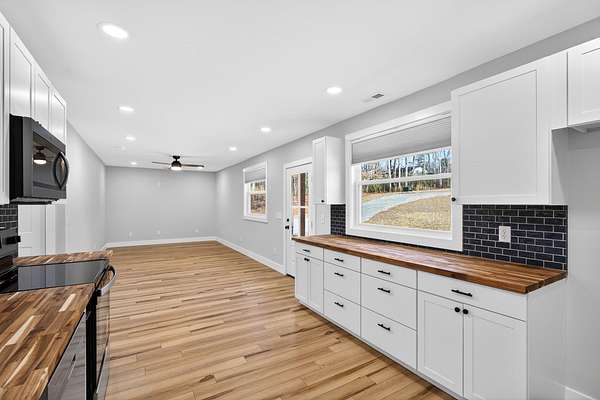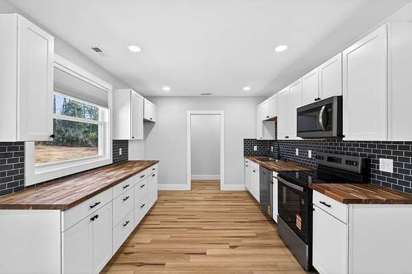 Welcome to 504 Norris St, a charming 3 bedroom, 2 bath house located in Jonesville on 2.65 acres of land. The house is located in a quiet neighborhood with the house sitting off the road so you feel secluded. This home brings updated and modern feel to a traditional style house. There is an open concept living room and kitchen with vinyl flooring throughout the house. The kitchen highlights tons of cabinet space with amazing views to the front yard. The laundry room is tucked away off the kitchen by pocket door access and added pantry space. The master is located at the back of the house with en suite bathroom. There is tons of space to add a garage or shop to this property or bring your animals as this property is in the county. There is even space on the property for another house if needed. Come make this your new home today.