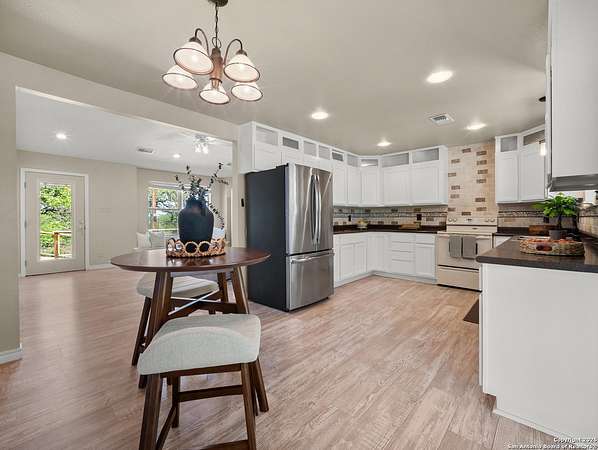 Ask about $0 Down USDA Financing! Seller financing options available! Tucked away in the heart of the Hill Country, this incredible 11.13-acre San Marcos property offers the perfect blend of privacy, space, and functionality-without the restrictions of an HOA. Ideal for those craving a peaceful retreat or a versatile homestead, the land is dotted with mature trees, teeming with wildlife, and comes equipped with everything you need to live, work, and play. At the top of the private driveway sits the main residence at 504 Oak Grove, a charming home ready to make your own. Featuring three spacious bedrooms and a flex room, the layout flows effortlessly from the cozy living area into the kitchen and out to a peaceful back porch-ideal for morning coffee or evening sunsets. The primary suite is a true retreat, offering generous space and a serene atmosphere perfect for unwinding. A spacious workshop outfitted with a vehicle lift and air compressor makes it a dream for hobbyists or small business owners, and two additional storage units ensure there's room for everything. A shared well with full filtration system provides clean, sustainable water, and the wide-open acreage invites you to roam, garden, expand, or simply enjoy the peaceful setting. Located just 15-20 minutes from essentials like H-E-B, retail, and Texas State University, this property is your chance to own a slice of Texas paradise-with space, serenity, and convenience all in one.