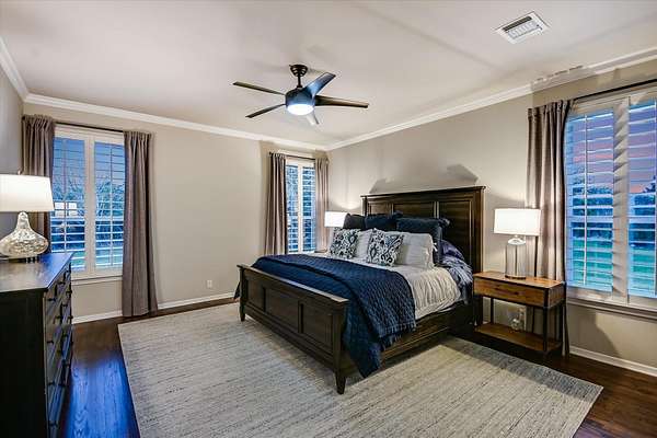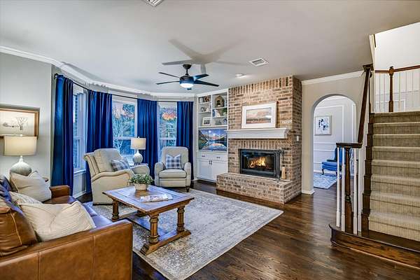 - Crown Molding, Double Vanity, Open Floorplan, Pantry, Primary Bedroom On Main, Stone Counters, Tile Counters