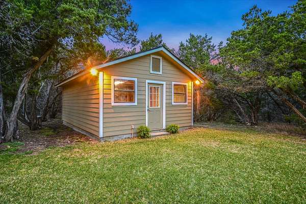 Welcome to a rare, hill country retreat set on the highest lot in Saddletree Ranch-a peaceful, secluded property where you can't see a single neighbor. Minutes from the conveniences of Bee Cave and Dripping Springs. Meticulously maintained, warm, inviting, and thoughtfully designed, this custom home sits on 3.6 acres with an additional 1.8 acre lot available for those who want even more space and privacy. This property is "the best of both worldsprivate, quiet, and surrounded by nature, yet an easy drive to schools, shopping, dining, and recreation. Abundant wildlife including deer, foxes, rabbits, and migrating birds. Horses and chickens allowed. MAIN HOUSE - 3,057 sq ft - 4 bedrooms, 3.5 baths - Primary suite on the main level - Three living areas w/natural light - Wood floors downstairs; new carpet upstairs - Large eat-in kitchen island and double ovens - Wood burning fireplace w/gas starter - Exceptional storage: walk-in closets in every bedroom, multiple hall closets, under stair storage, and a floored attic above the oversized 3 car garage - Laundry room w/ generous workspace - Huge garage designed for trucks and SUVs - Water softener plus whole house reverse osmosis system w/500 gallon storage tank GUEST HOUSE Ideal for multi-generational living, guests, or private office/studio needs. - 930 sq ft custom built, single level layout - Four-sided brick, no stairs; ADA sized doors and walkways - Full kitchen, living, dining, and bathroom - Spacious bedroom w/walk-in closet and attic storage - Separate electric, cable internet, and septic - Shares RO water system with main house - Screened in porch (could convert to 2nd bedroom) - Full sized appliances - Wired for outdoor landscape lighting OUTBUILDINGS & PROPERTY FEATURES - 16x24 workshop w/overhead garage door - Well pump house w/water softener and pressure tank - 16 station irrigation system covering all turf areas - 20x15 garden plot - Backs to conservation land