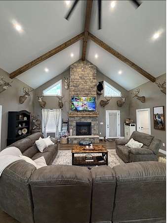 Exceptional nearly new, 3 bedroom, 2 full bath home offering 1,888 sq. feet of living space situated on 8.2 surveyed acres of beautiful, private countryside. Step inside to an open concept design with soaring cathedral ceilings and a custom fireplace with gas logs. The kitchen features a large breakfast bar and all of the stainless appliances will convey. Outside, enjoy living at its finest with covered front and back porches, perfect for relaxing or entertaining. Property also features a 12x24 storage shed and a 0.6 acre fully stocked pond, ideal for recreation and enjoying the outdoors. This is a rare opportunity to own a like new home with acreage, privacy and it's located only minutes from Laurel Lake. You don't want to miss out on this one, so make your appointment today! Professional pictures and video to be added soon.