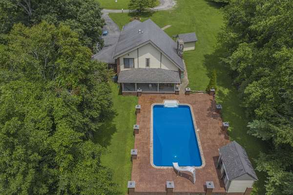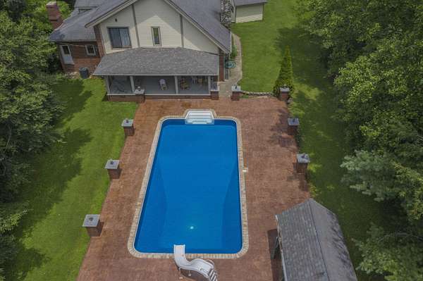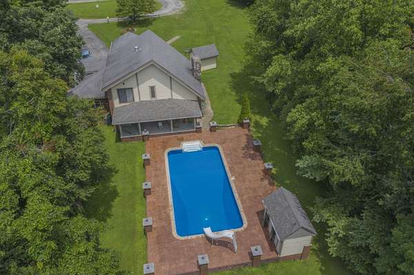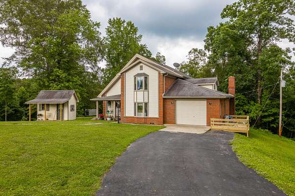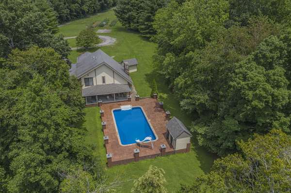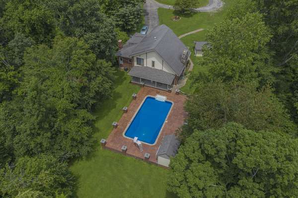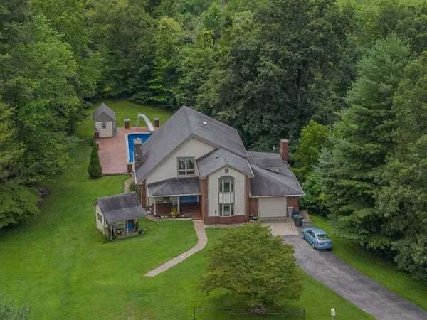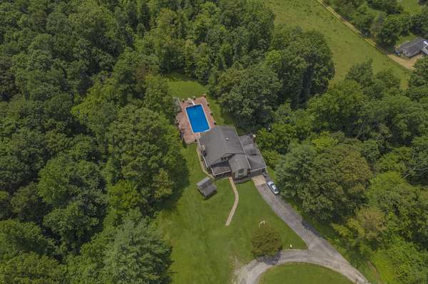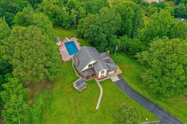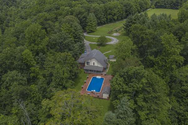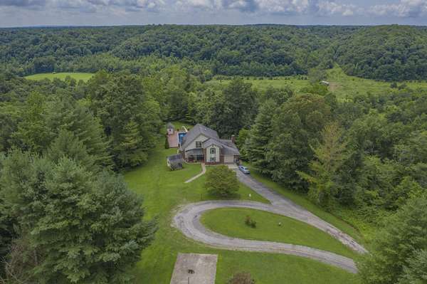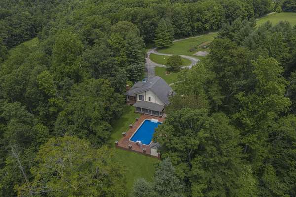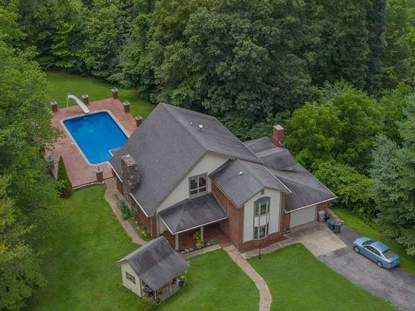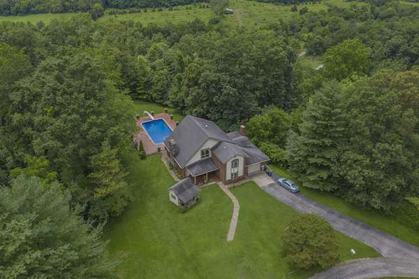 Right here in Kentucky, you can find a little slice of Gatlinburg! This meticulously crafted residence is now on the market. Built with great care and dedication by the current owner, it has been his cherished home for more than three decades. The spacious house features a two-story Great room, complete with an upstairs walkway from the bedrooms that overlooks a grand fireplace. Unique to this home are the dual staircases-front and back-with the rear staircase providing direct access to the kitchen and dining area. On the first floor, there is a bedroom and bathroom, while the second floor houses four bedrooms and another bathroom. Nestled on a private 2-acre plot bordered by forest and abundant wildlife, the property offers tranquility and seclusion. A 20 by 40-foot inground pool provides an ideal setting for entertaining or simply enjoying peaceful moments. Recent updates include new flooring in the den and the downstairs bathroom. If you're seeking a quiet retreat with plenty of space between neighbors, this could be the perfect home for you!