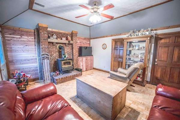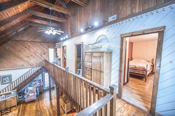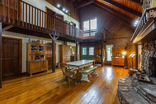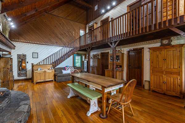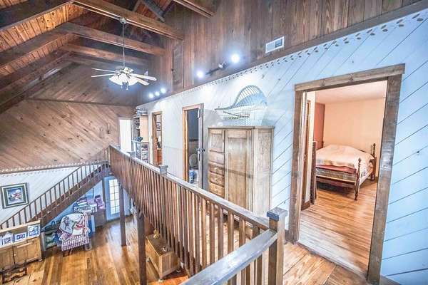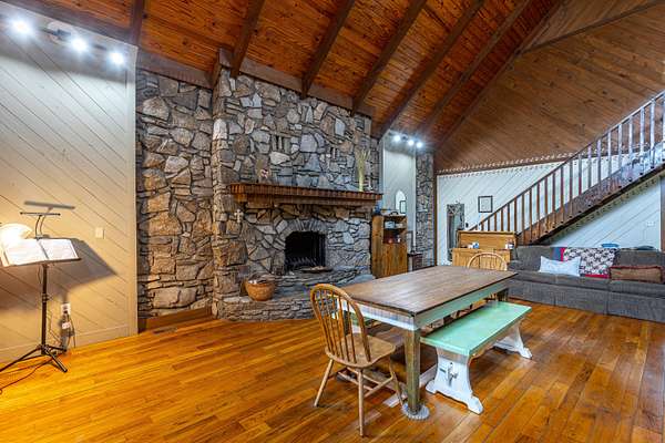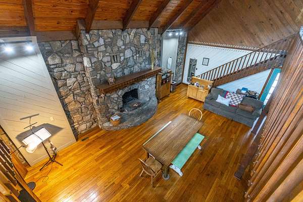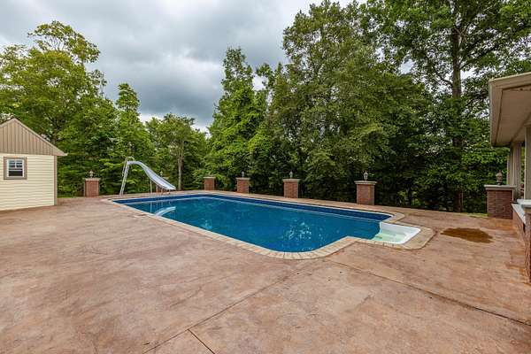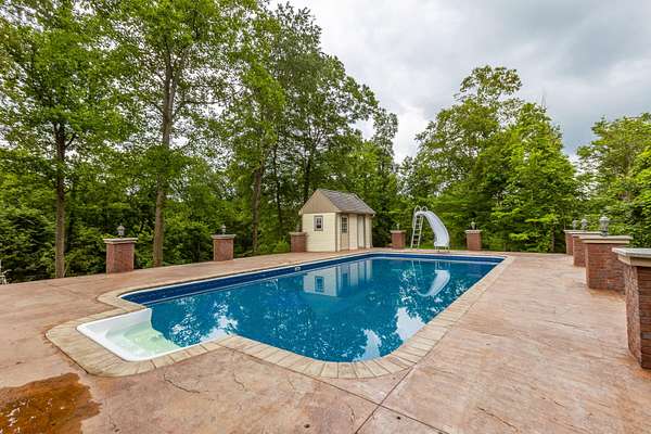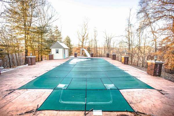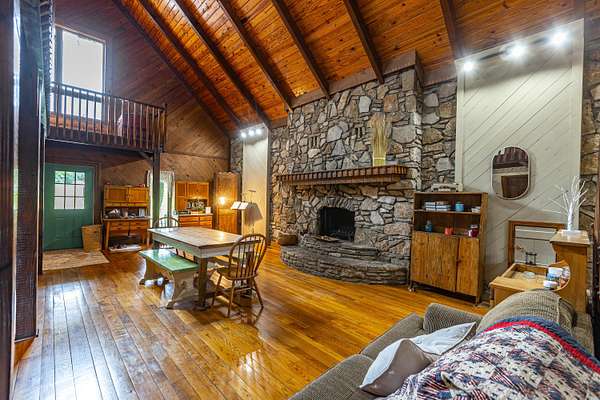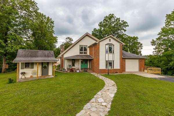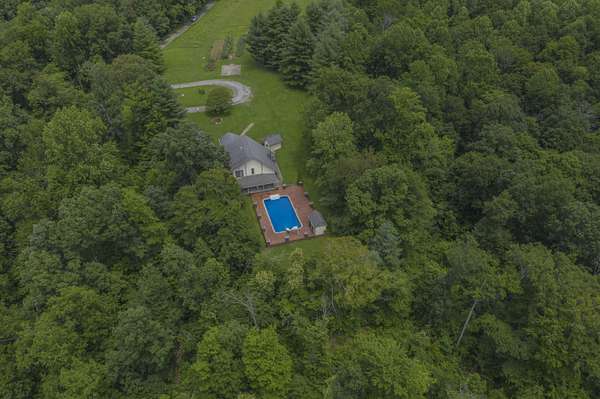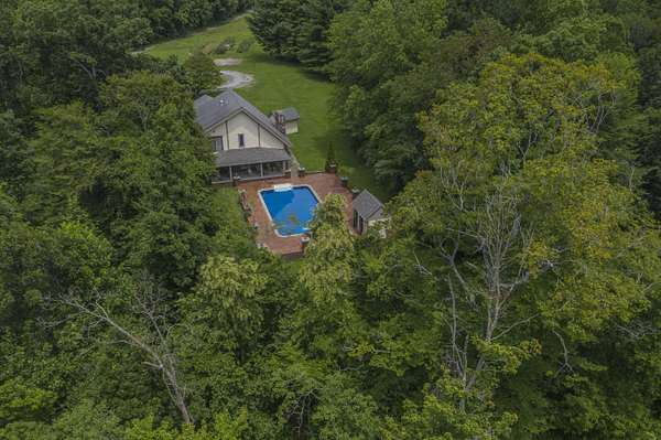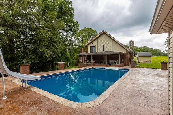 Right here in Kentucky, you can find a little slice of Gatlinburg! This meticulously crafted residence is now on the market. Built with great care and dedication by the current owner, it has been his cherished home for more than three decades. The spacious house features a two-story Great room, complete with an upstairs walkway from the bedrooms that overlooks a grand fireplace. Unique to this home are the dual staircases-front and back-with the rear staircase providing direct access to the kitchen and dining area. On the first floor, there is a bedroom and bathroom, while the second floor houses four bedrooms and another bathroom. Nestled on a private 2-acre plot bordered by forest and abundant wildlife, the property offers tranquility and seclusion. A 20 by 40-foot inground pool provides an ideal setting for entertaining or simply enjoying peaceful moments. Recent updates include new flooring in the den and the downstairs bathroom. If you're seeking a quiet retreat with plenty of space between neighbors, this could be the perfect home for you!