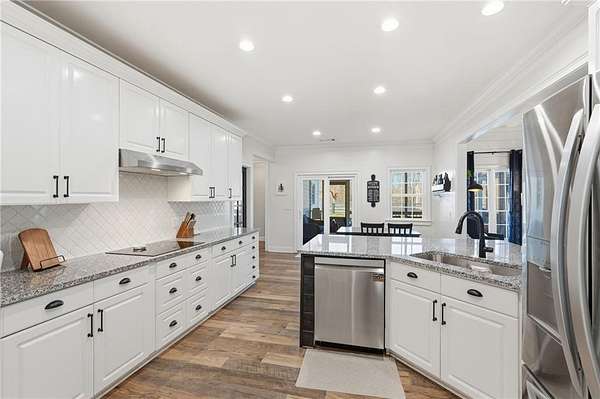 - Dishwasher, Disposal, Electric Cooktop, Electric Oven, Microwave, Range Hood, Refrigerator