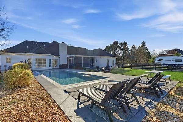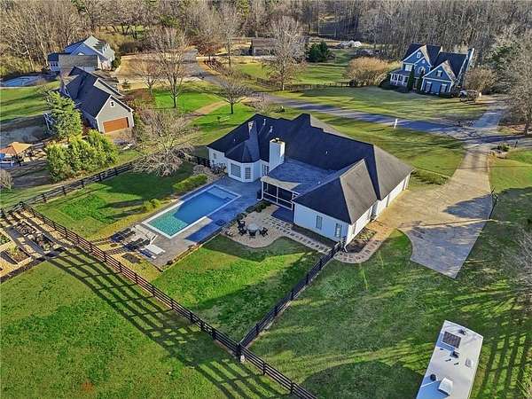 Amazing Ranch home on 2 acres with 2 Primary Suites on Main and a POOL in a private neighborhood, Meadow Creek Farms! 4BR/3BA with Upgrades galore: Granite counters, SS Appliances, custom tile backsplash, beautiful walk-in pantry, premium wood-look flooring, luxury mineral water gunite pool with Pebbletech. You'll love the vaulted Family Room with fireplace, the formal Dining Room seats 12+ and the screened in porch overlooking the fire pit and pool. Huge Fenced in back yard with out building too. Great location in a quiet neighborhood convenient to schools, shopping and restaurants! Excellent North Forsyth County Schools: North High, North Middle & Coal Mountain Elementary.