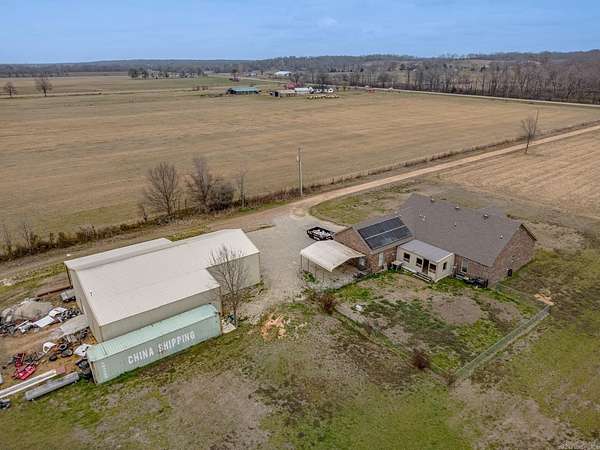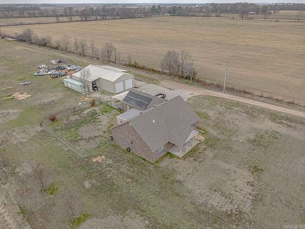Welcome to Market 5041 Hwy 1 in Harrisburg, AR within the Harrisburg School District. Situated on 9.80 +/- level acres is a 2010 built all brick beauty topped w/ architectural shingles and accented by solar panels, covered front porch, enclosed back deck, chain link fencing and a 2 car side entry garage. The interior holds 2,290 sf of well laid out living space and features an open concept living, kitchen, and dining area w/ kitchen island, breakfast bar, stainless steel appliances, tiled backsplash and gas range. The Master features a walk-in closet and en-suite w/ tiled walk-in shower housing a clawfoot tub and dual vanity. 3 additional bedrooms, a guest bath w/ shower/tub combo, and a laundry room w/ sink complete the layout. The grounds feature a large gravel drive and a 30x68 shop w/ 2 lean-tos, concrete flooring, electric, propane heater, 3 overhead doors, 110 & 220 voltage and 14 foot walls. You'll love the enclosed back deck perfect for entertaining or enjoying the sunsets across the surrounding countryside. Conveniently located 20 miles to Jonesboro, AR and 60 miles to Memphis, TN. Call today to schedule your tour and make this country house with all the fixin’s your home.
