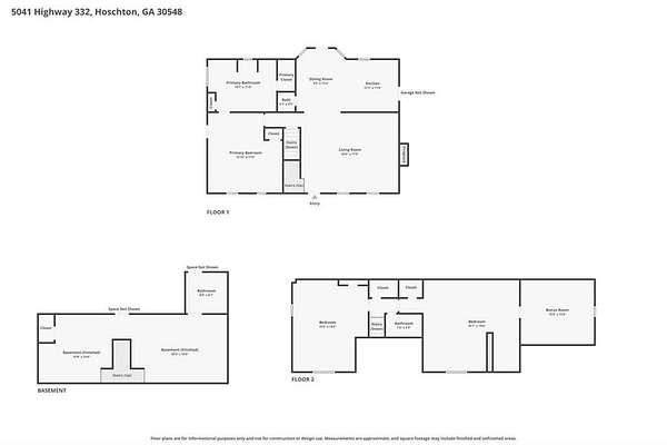 - Bathroom x 4, Bedroom x 3, Bonus Room