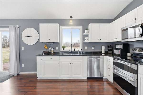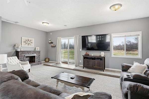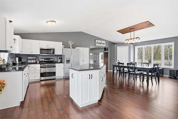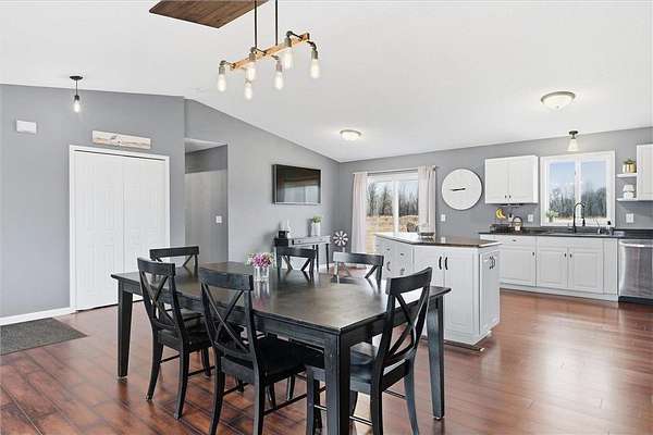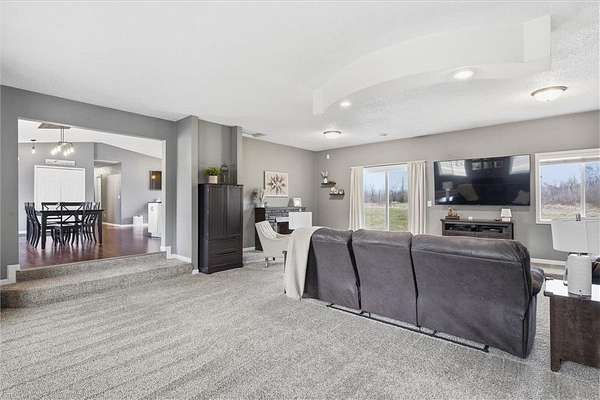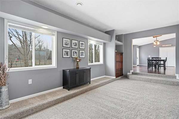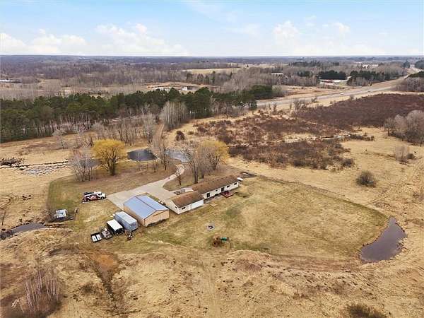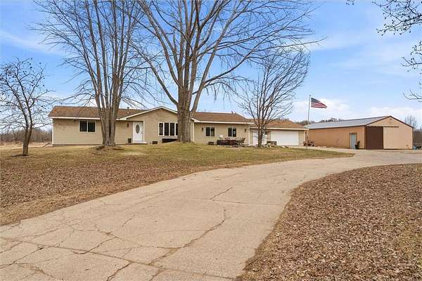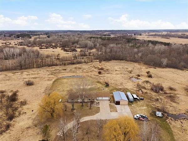 Enjoy the ease of single-level living on this beautifully maintained and move-in ready property set on 27 acres. This 3-bedroom home offers a bright, open layout filled with natural light, creating a clean and welcoming feel throughout. The spacious kitchen is designed for both everyday living and entertaining, flowing seamlessly into the dining and living areas. Perfect for gatherings. Step outside to a peaceful setting featuring a mix of open land, wooded areas, ponds, and a creek surrounding the property. Outdoor enthusiasts will appreciate the established motocross track, along with additional open space suitable for recreational vehicle use. The land also offers excellent hunting opportunities, including an insulated deer stand already in place. Outdoor living is enhanced with a front patio and a backyard deck just off the dining area, ideal for grilling and relaxing while taking in the views. The land offers a unique blend of open space, wooded areas, ponds, and a creek, providing beautiful views and endless opportunities to enjoy the outdoors. The attached 3-car garage offers excellent convenience and functionality, while the impressive 32x48 pole building features concrete flooring and 200 amp electrical service. Both the garage and pole building offer drive-through capability, adding flexibility for storage, equipment, and recreational use. Recent updates include a new furnace (2025), garage insulation and sheetrock (2024), and new carpet (2023). Conveniently located with easy access to nearby shopping, dining, recreational trails, and lakes, this property offers a rare combination of space, functionality, and accessibility.