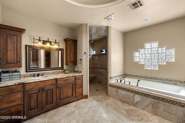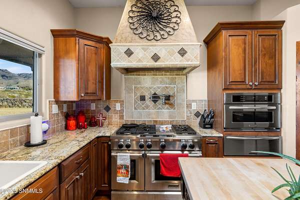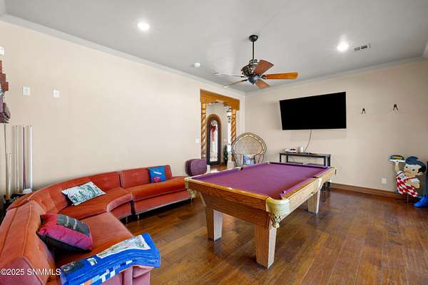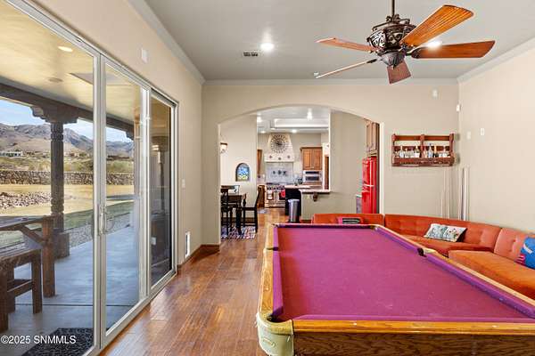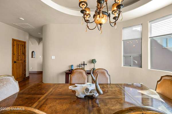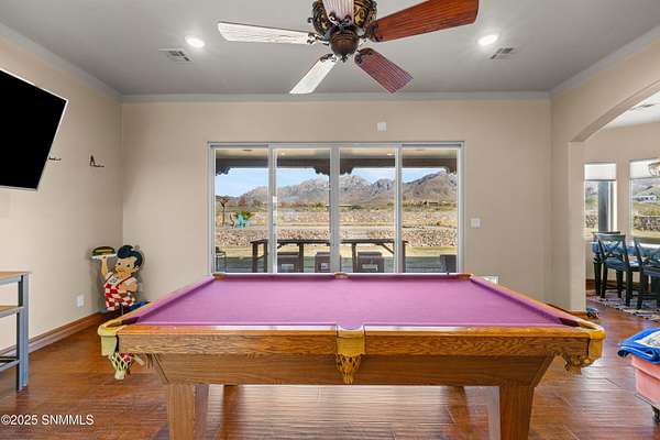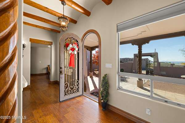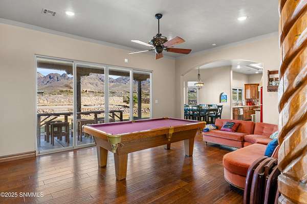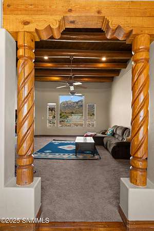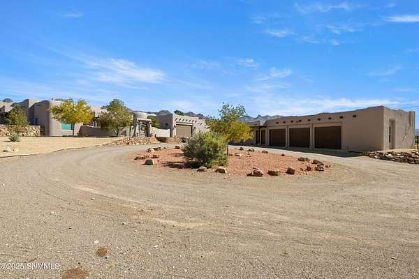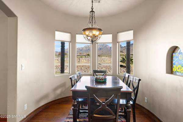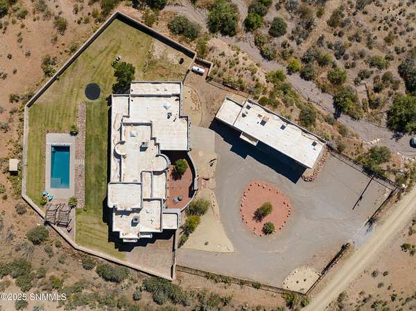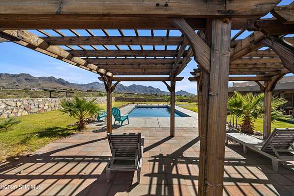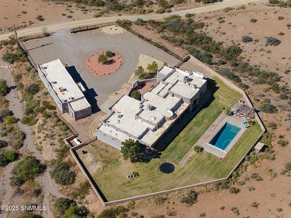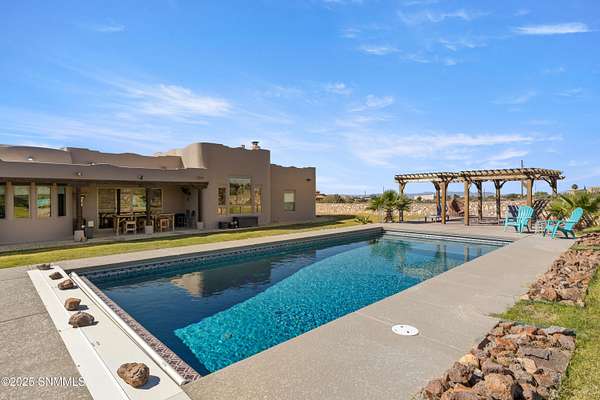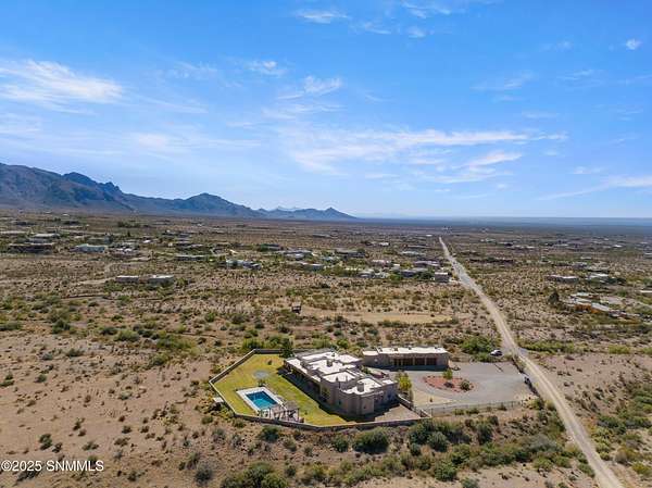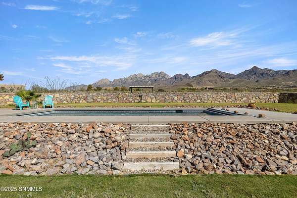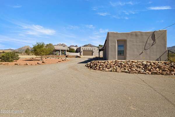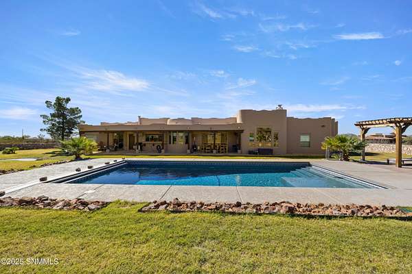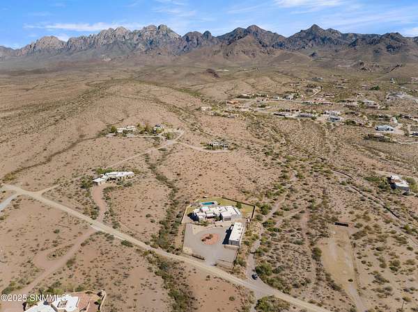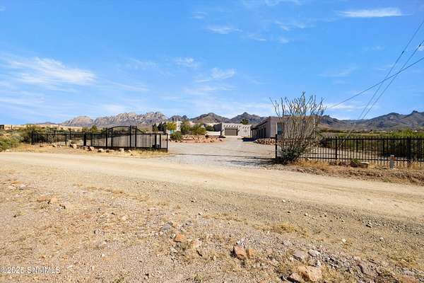 Experience unparalleled Southwestern luxury in this exceptional estate situated on 5 acres with unobstructed, panoramic views of the iconic Organ Mountains. The 4,015 sq. ft main residence showcases rich wood flooring, substantial wood vigas and pillars, unmatched views, and a smart split-floor plan. The main home has 4 bedrooms, 3 full baths, and a bonus 1/2 bath on the back patio, perfect for poolside gathering. With two living areas & two areas for dining, this home is built for everyday comfort and effortless entertaining. The outdoor living is elevated by a sparkling in-ground pool with motorized cover, a pergola to relax under and over 600 square feet of covered patio. Perfect for multigenerational living, included is an approx. 714 square foot casita. Beautifully finished and climate-controlled with 2 mini splits. This space is connected to an incredible approx. 50x24, 3-car detached garage with 4 mini-splits of its own! A total of 5 garage spaces to be enjoyed!