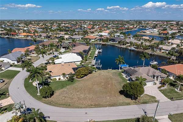 OVERSIZED SAILBOAT-ACCESS LOT ON WIDE CANAL BASIN IN BURNT STORE ISLES - Take advantage of this exceptional opportunity to build on the water in Burnt Store Isles. Tucked near the end of a quiet cul-de-sac and just moments from Twin Isles Country Club, this oversized lot delivers the space, setting, and view that elevate a custom home from ordinary to unforgettable. Positioned along a wide canal basin, the property offers an impressive long water view and outstanding maneuverability for your boat. An angled concrete dock is already in place allowing you to dock your boat before you can even park your car. Northeast rear exposure brings soft morning light across the basin and cooler afternoons on your future lanai. With 142 feet of road frontage, the generous dimensions allow flexibility in your design—ample room for a spacious footprint and possible three-car garage. The lot is ready to build, with city water and sewer available. Burnt Store Isles is a deed-restricted waterfront and golf community. OPTIONAL HOA and BSI boat club memberships foster a strong sense of community, offering regular social gatherings and events that make it easy to connect with neighbors and enjoy an active, waterfront lifestyle. Twin Isles Country Club sits in the heart of the community, offering golf, tennis, and dining just minutes from your doorstep. Burnt Store Marketplace anchors the community with Publix, Home Depot, and additional shops and restaurants—making everyday errands convenient. With quick access to US41 and I-75, you’re just minutes from historic downtown Punta Gorda, area waterfront parks, scenic walking and biking trails, and a vibrant mix of local dining, shopping, and year-round community events that include weekly farmers' markets, art fairs and musical festivals. Design the home you’ve always wanted capturing one of the best basin views in Burnt Store Isles. Start building your Florida dream today.