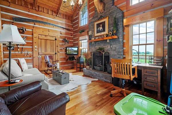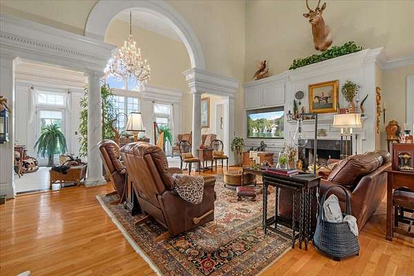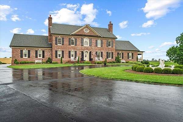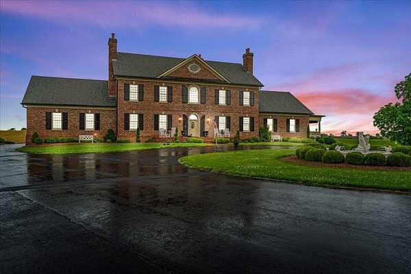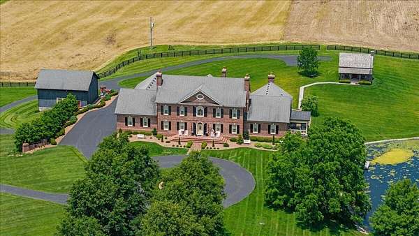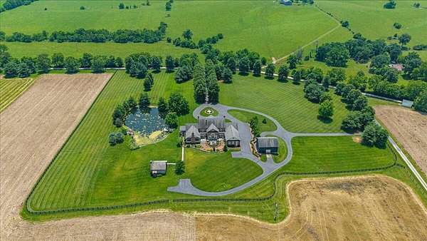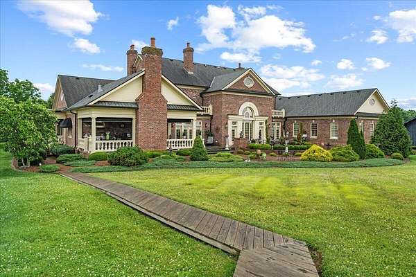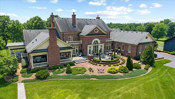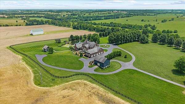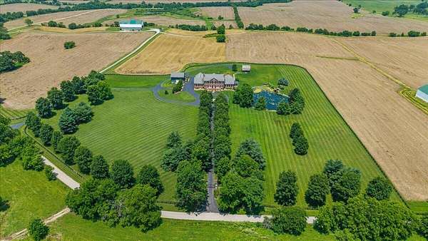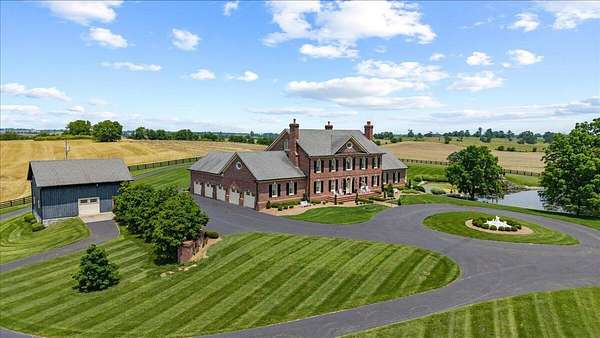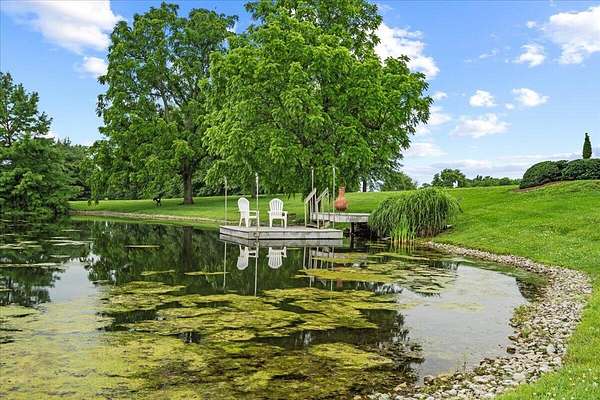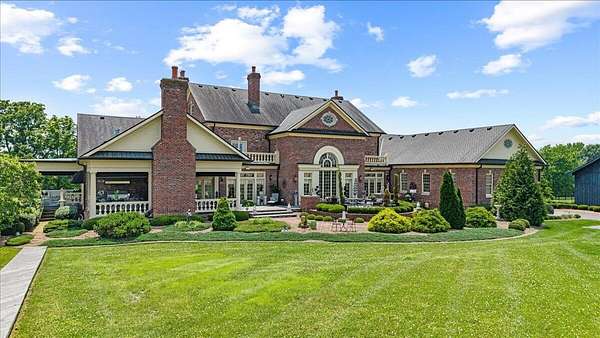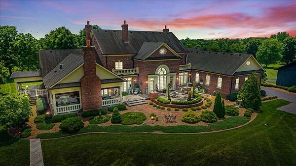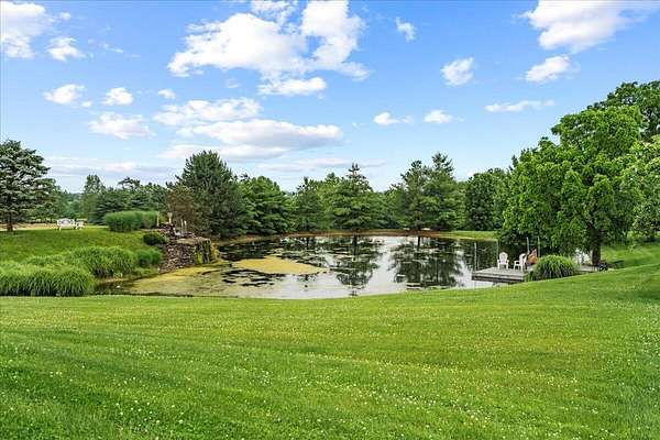 Welcome to a truly exceptional 10-acre estate, where luxury and nature converge. This custom-built, three-story home, completed in 2006 , offers 7274 sq ft of meticulously designed living space. With 6 bedrooms and 5.5 bathrooms, there's ample room for family and guests. The impressive 2432 sq ft, temperature-controlled 5-car garage provides extensive space for vehicles and hobbies. Beyond the main residence, discover an outbuilding for equipment, and a charming log cabin guest house complete with its own kitchen and bathroom, offering privacy and comfort for visitors. Step outside to a fully outfitted outdoor kitchen and patio with fireplace, perfect for entertaining. The property also features a serene pond with a picturesque limestone waterfall, crafted from the excavation of the main home's basement, and fed by an underground lake. This estate has a rich history of hosting gatherings for various governors and political figures, adding to its unique allure. Inside, the home boasts a theater, a formal living room, a sitting room, and a dining room, providing diverse spaces for relaxation and entertainment.