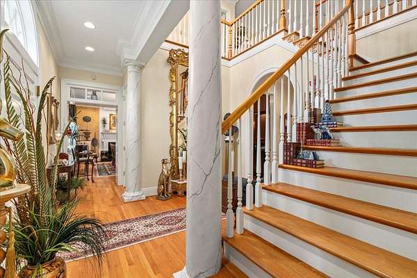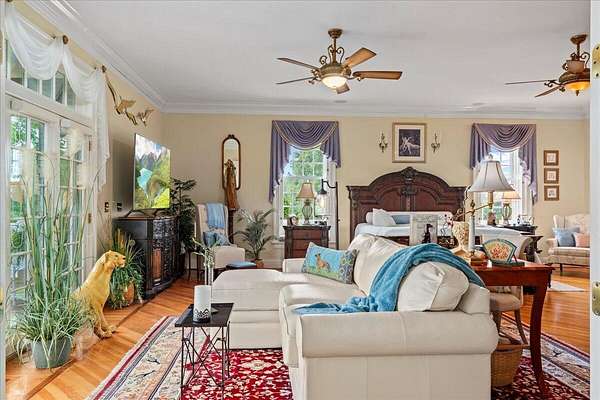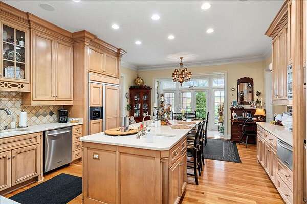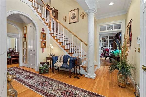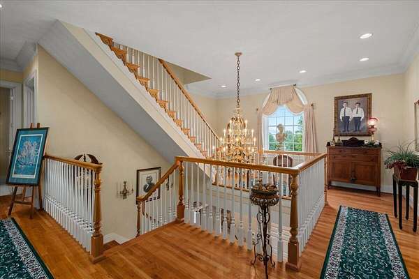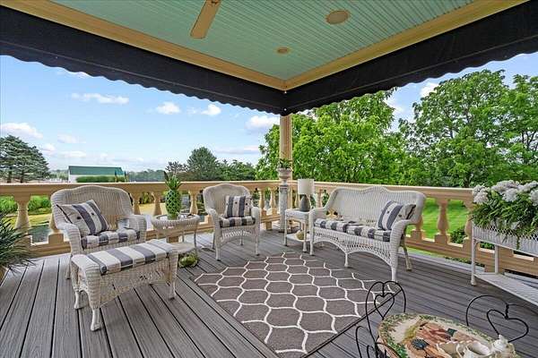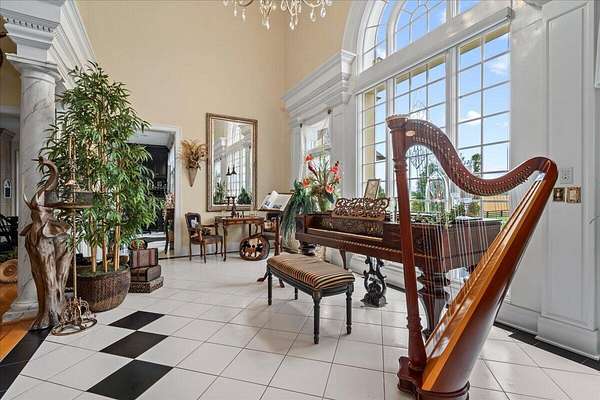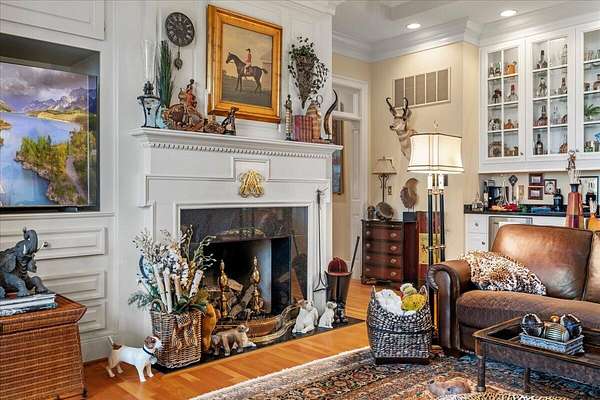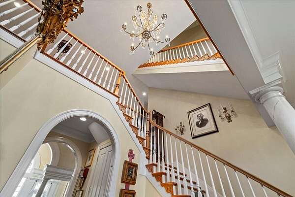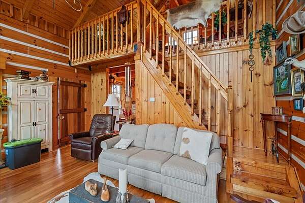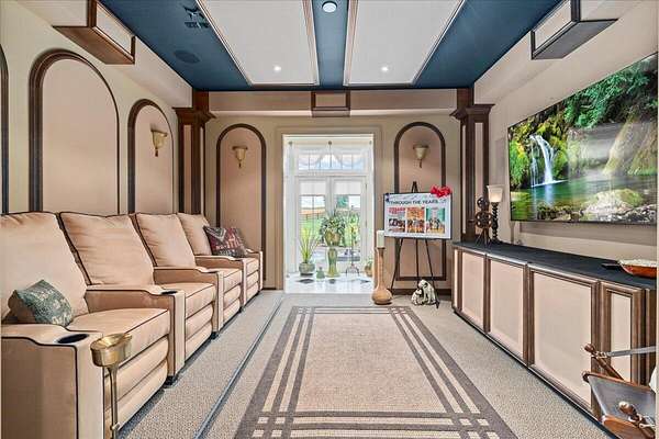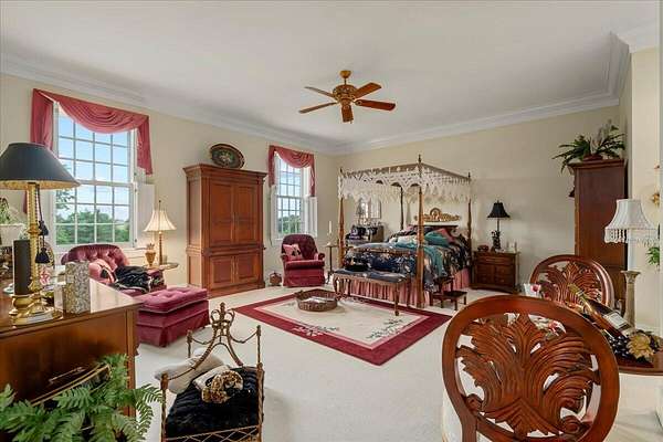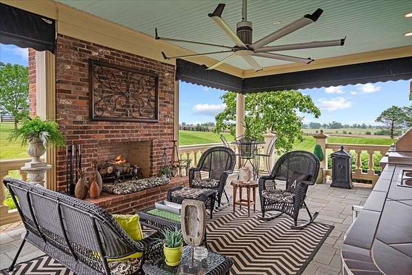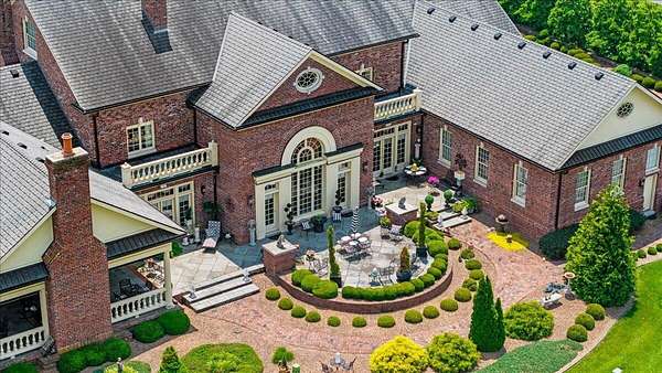 Welcome to a truly exceptional 10-acre estate, where luxury and nature converge. This custom-built, three-story home, completed in 2006 , offers 7274 sq ft of meticulously designed living space. With 6 bedrooms and 5.5 bathrooms, there's ample room for family and guests. The impressive 2432 sq ft, temperature-controlled 5-car garage provides extensive space for vehicles and hobbies. Beyond the main residence, discover an outbuilding for equipment, and a charming log cabin guest house complete with its own kitchen and bathroom, offering privacy and comfort for visitors. Step outside to a fully outfitted outdoor kitchen and patio with fireplace, perfect for entertaining. The property also features a serene pond with a picturesque limestone waterfall, crafted from the excavation of the main home's basement, and fed by an underground lake. This estate has a rich history of hosting gatherings for various governors and political figures, adding to its unique allure. Inside, the home boasts a theater, a formal living room, a sitting room, and a dining room, providing diverse spaces for relaxation and entertainment.