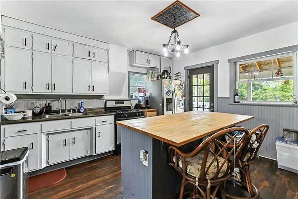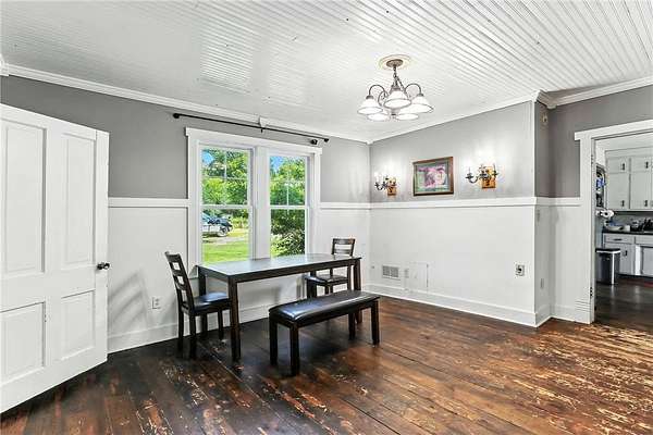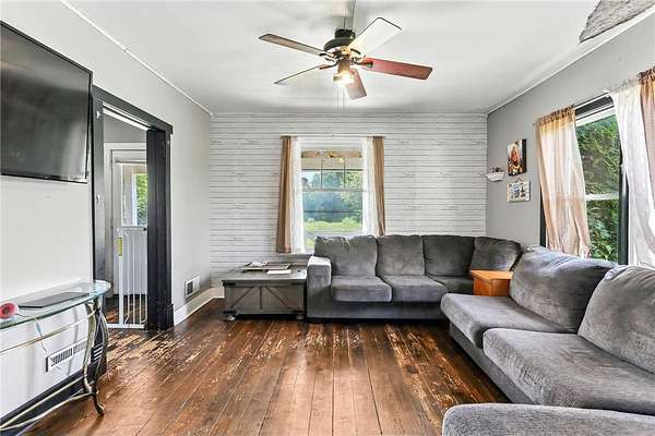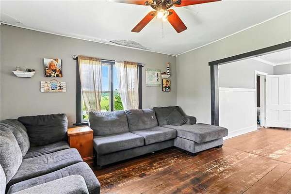 This two story house has original wood floors! It is located on 3.67 acres. Easy access to Interstate 35. New AC unit installed 8/21. Huge open front porch w/ swing & expanded attached deck. New chicken coup. There are two laundry areas, one on the mail floor as you enter the back of the house before entering the kitchen. The other laundry is in the partial basement. The owners had a couple of horses and chickens on the property. There is one bedroom on the mail floor and a 1/2 bathroom. The remaining 3 bedrooms are on the second floor and a full bathroom.