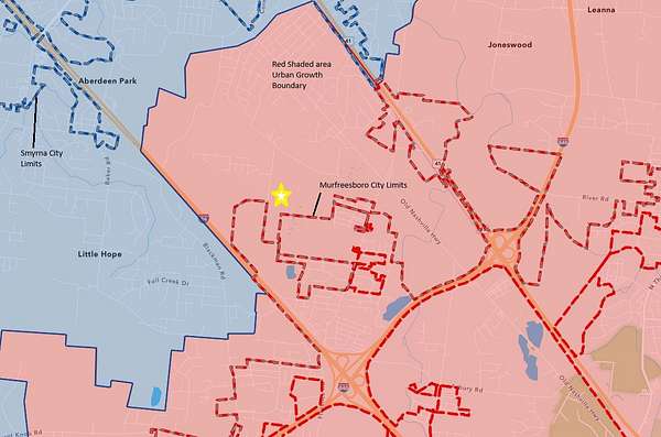 Est $54,004/moTremendous residential development opportunity. Approximately 64.5 acres of level farm land adjacent to Murfreesboro City limits. 720+ feet of paved road surface along western border. Tax parcel size 73 acres, seller to retain approximately 8.5 on the north end of the parcel. Ideally located between Murfreesboro and Smyrna with easy access to I840 and I24. Do not disturb neighbor at 5028 Justice Road, parcel and house is not a part of this sale. Utilities currently provided by Middle TN Electric and Consolidated Utility District