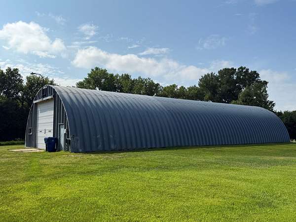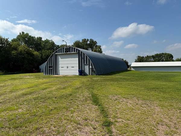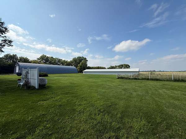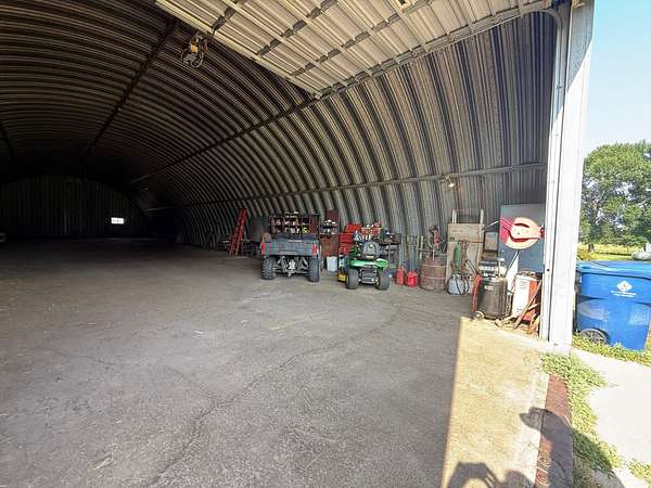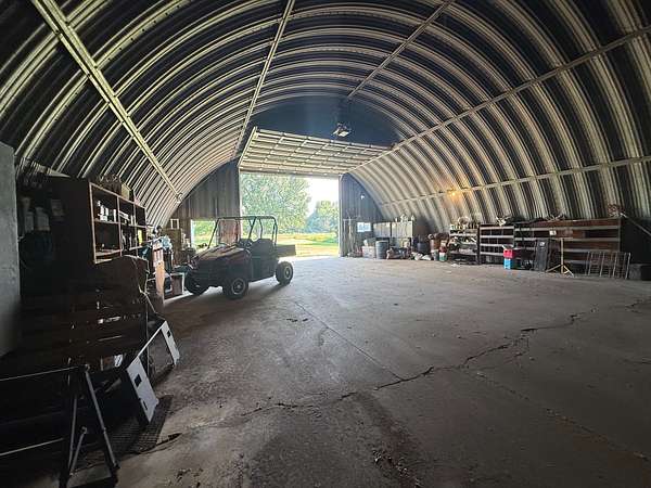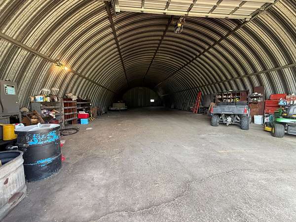 Large Quonset with cement floor, enclosed hog barn and detached garage/shop.