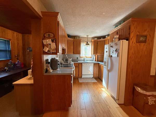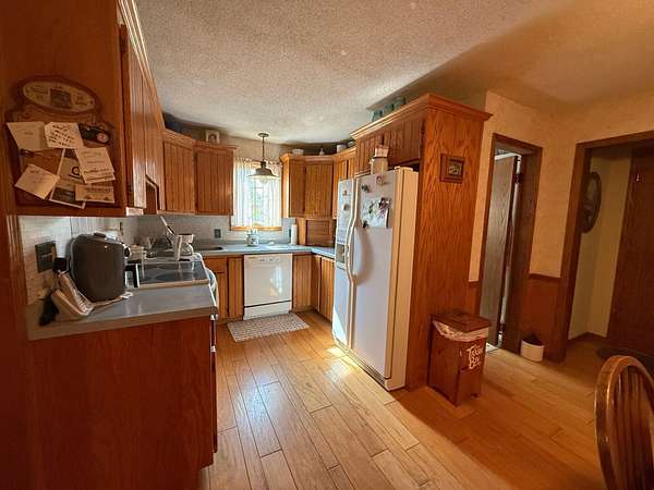 59.58 Acres+/- of pasture that includes a three bedroom, one bathroom home with attached double car garage. Main floor features main floor laundry, kitchen, office, bathroom and living room. Upstairs consists of 3 bedrooms. Garage has ample storage and has a staircase that leads to an open loft area above. Cement patio area that leads to well-cared lawn with underground sprinklers and established trees.