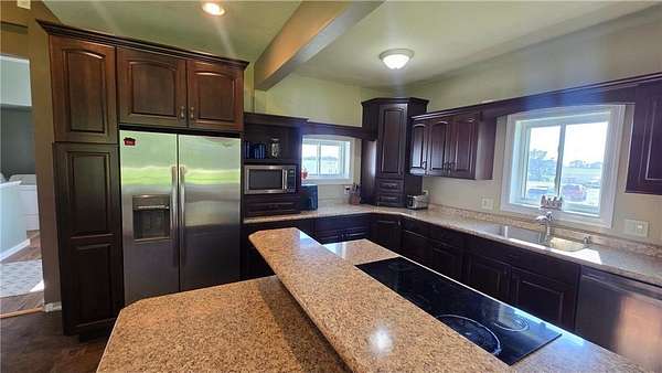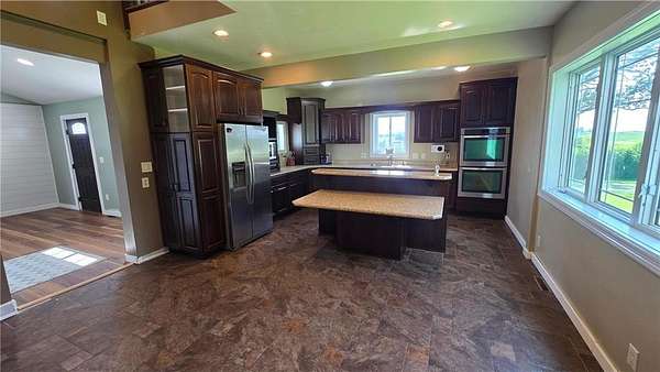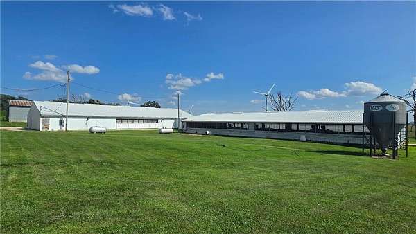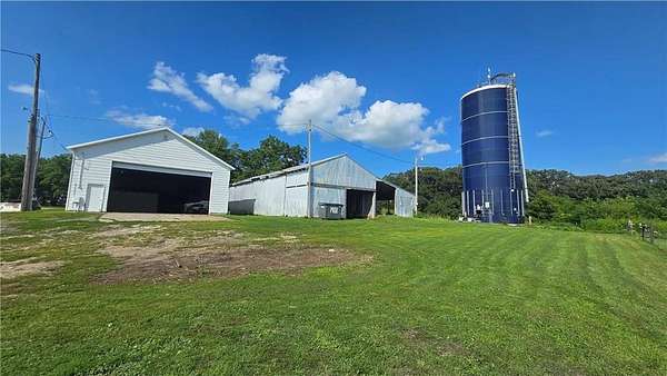 Versatile farmstead with hog barns, pastures, and scenic acreage! Welcome to this updated country property on 11.79 scenic acres -- a perfect blend of comfort, functionality, and natural beauty. The home features an updated eat-in kitchen, newer windows and roof, 200-amp electrical service, and new main-floor flooring. Upstairs offers two large bedrooms and an office, with the potential for a third bedroom on the main level. The entryway and basement entrance have been thoughtfully remodeled for better flow and accessibility. Ideal for livestock or homesteading, the property includes three well-maintained confinement barns with space for finishing pigs, farrowing rooms, and a nursery. Three fenced pastures and a heated water system make animal care and rotation easy. Additional sheds provide plenty of hay storage and shelter. Enjoy the beauty of mature woods and abundant wildlife including pheasants, turkeys, and deer. Foragers will appreciate the elderberries, mulberries, aronia berries, and apples growing right on the property. A large, fully finished shop offers concrete floors, heat, water, power, and internet -- perfect for projects, equipment, or business use. Move-in ready and designed for modern country living, this property is an ideal setup for expanding your livestock operation or enjoying a peaceful rural lifestyle.