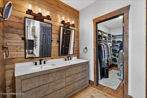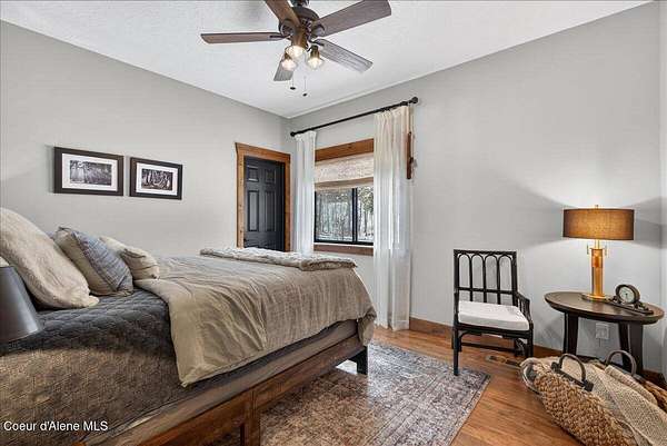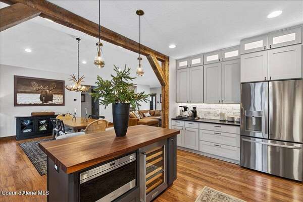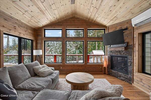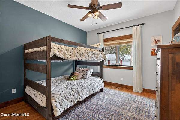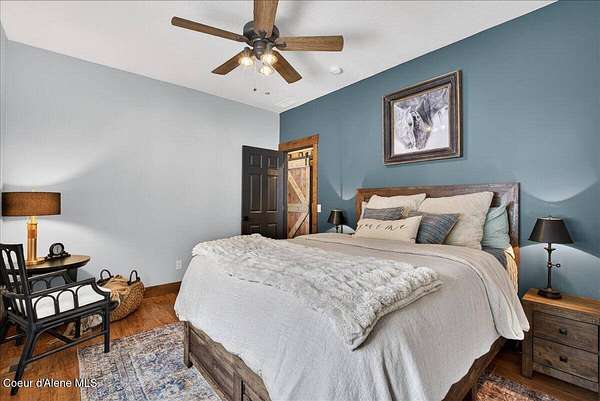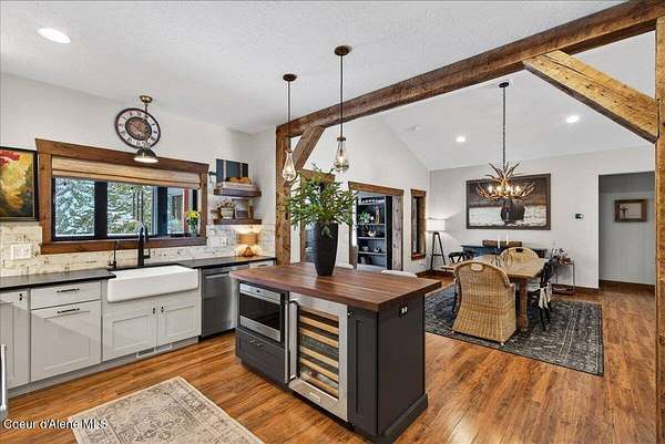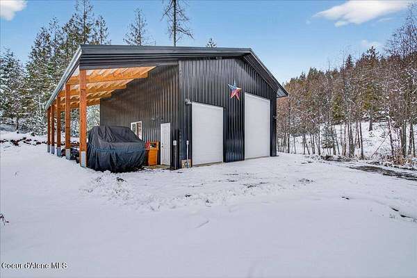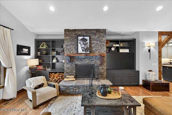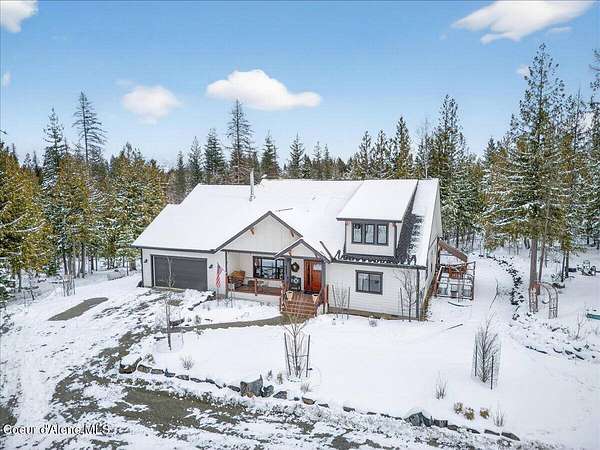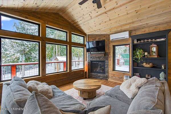 Perched above the quiet waters of Livermore Lake, this thoughtfully designed residence offers refined living with modern resilience. Spanning approximately 2,800 square feet, the home features four bedrooms and three baths, including two private primary suites, ideal for hosting or multi-generational living. At the center of the home is a chef-inspired kitchen with a 36'' professional gas range with griddle, drawer microwave, wine refrigerator, walnut-topped island, and quartz countertops, all framed by brand-new black Milgard windows that capture natural light and surrounding views. Dual fireplaces wrapped in Eldorado stone, including a wood-burning feature, bring warmth and architectural presence throughout. Built for year-round comfort and reliability, the property includes a whole-house Generac generator, 250-gallon propane tank, roof heat system, leaf-guard gutters, and a complete water treatment system with filtration, softening, and reverse osmosis. Outdoors, custom landscaping, irrigation, full exterior lighting, and a dedicated firepit area create a setting equally suited for entertaining or quiet evenings. A newly built pole barn (2024) with 30-amp power, heat, and lighting adds flexible space for storage, hobbies, or workshop use, complemented by thoughtful touches like a propane BBQ hookup, heated towel rack, and a discreet enclosed pet area.