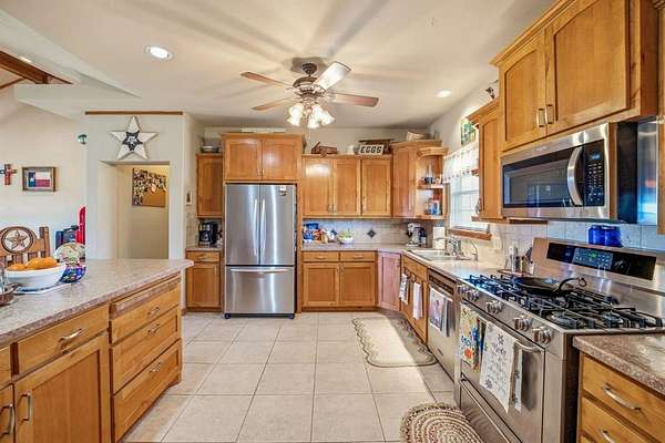 Experience the perfect blend of rustic charm and modern comfort with this stunning 97± acre ranch in Huckabay, Texas, offering a beautifully designed 2,223 square foot custom home featuring 4 bedrooms and 2 baths. The open concept layout is filled with natural light and centered around a cozy wood burning fireplace with propane lighter, creating a warm and inviting space for gathering with family and friends. The spacious kitchen includes a gas stove, abundant cabinetry, bar seating, and a formal dining area overlooking scenic coastal pastures, while the private primary suite offers patio access, dual sinks, a soaking tub, separate shower, and a large walk in closet. A mud room with sink, washer and dryer space, and room for an extra freezer adds everyday functionality. Outside, enjoy peaceful Texas sunrises from the covered back patio, take advantage of the large carport with storage room, and make full use of the impressive ranch improvements including a 5 stall 12x12 barn with runs, a 24x16 tack room or shop with double doors, additional storage shed with trailer cover, cattle pens, two ponds, and fully fenced and cross fenced high producing coastal fields ideal for livestock and horses. Tucked away on the property is a small hunting cabin perfect for weekend getaways, and with Huckabay ISD and convenient access to Stephenville and the interstate, this ranch offers the ideal balance of privacy, productivity, and country living.