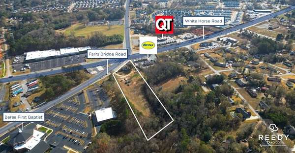 This versatile +-4.65-acre development site is prominently located at the signalized intersection of Farrs Bridge Road and White Horse Road, just +-10 minutes from Downtown Greenville. Featuring excellent, ready-to-build topography and approximately 300 feet of road frontage along Farrs Bridge Road, the property offers outstanding visibility and access in a high-traffic commercial corridor. The front +-1.75 acres are zoned C-2, while the rear +-2.9 acres are zoned R-10, allowing for a wide range of commercial, retail, office, medical, and mixed-use development opportunities. The site benefits from strong traffic exposure with 15,700 AADT on Farrs Bridge Road and 29,300 AADT on Highway. Utilities are readily available, including MetroConnects Metropolitan Sewer Subdistrict with three sewer taps available, Greater Greenville Sanitation Commission services, Duke Energy power, and Spectrum fiber-optic internet. Fire protection is provided by the Berea Fire District. A brick house will be removed after closing, and the building located on the corner conveys with the property, further enhancing redevelopment potential. This property represents an exceptional opportunity for developers and investors seeking a highly visible, well-serviced site in one of Greenville County's most active growth corridors.
