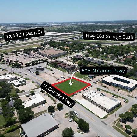 Est $1,800/moEmpty commercial lot in an excellent location, near Hwy 161 and I30 as well as stable residential neighborhoods, medical clinics, grocery stores, ect. Great accessibility and in a high traffic area with great visibility in the Hwy 161 Corridor. Zoned for general retail space. SB840 allows multi-family and mixed use. Call for more information. Survey is available.