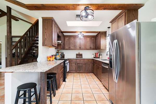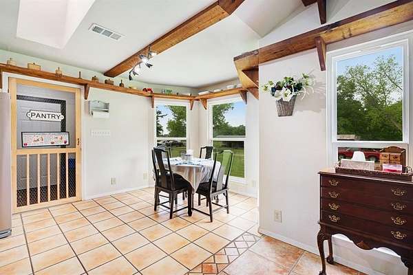 Welcome to this versatile and beautifully improved 11.70 acre property located on the edge of Bogata offering the perfect balance of convenience and peaceful country living. The main home features approximately 2100 square feet and welcomes you with a stunning front porch before stepping inside to a completely updated interior. You’ll find 3 bedrooms, 2 full bathrooms, custom cabinetry, granite countertops, and a striking custom staircase leading to a loft bedroom adding both character and functionality. A separate 560 sq ft tiny home provides incredible flexibility, ideal for a mother in law suite, guest house, or potential rental income opportunity.