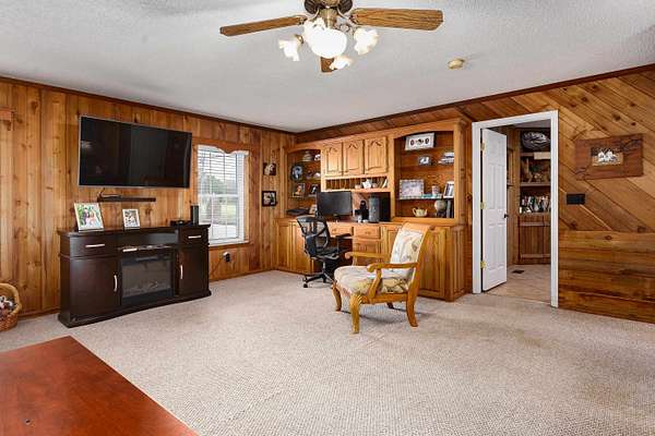 Priced $17,200 under tax appraisal! Experience country living with modern touches in this 3,118 sq ft, 3-bedroom, 2.5-bath home on nearly 2 acres. The remodeled kitchen shines with custom cabinetry, a large kitchen island, and granite countertops, while cedar woodwork adds rustic elegance to the closets, upstairs bedrooms, den, & attached garage. Enjoy both a massive heated and cooled sunroom and a second-story balcony sunroom, offering incredible additional living and relaxation space. With a 2-car attached garage and a separate 2-car detached garage, there’s room for everything. Located directly across from Twin Pines Country Club, featuring an 18-hole golf course, pools, and dining. The fenced pasture, vintage wood barn, and well provide endless possibilities for outdoor living and hobbies.