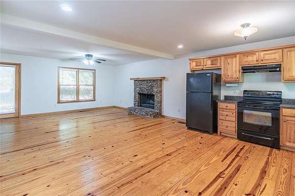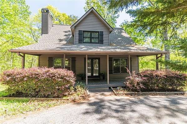 Nestled in the tranquil setting of Dahlonega, GA, 505 River Flow Drive offers a warm and cozy style home, conveniently located just 15 minutes from the quaint downtown square of Dahlonega and only 11 minutes from the University of North Georgia. The living room is a captivating space for relaxation and enjoyment, distinguished by a natural stone fireplace that promises cozy evenings. The open floor plan concept has the living room that opens to the natural pine kitchen for a sense of expansive comfort. The primary bedroom is most conveniently located on the main level and has a walk in closet with an en suite double vanity bathroom for ample space and comfort for personal preparation. Upstairs are 2 additional large bedrooms that share a full bathroom. The basement has tons of space for storage and could be finished if you need additional living space. The large front porch has plenty of room for rocking chairs and a hanging swing. The back deck overlooks a large private and peaceful wooded lot for morning coffee or afternoon tea. No HOA. Would also be great for a rental being so close to downtown Dahlonega and University of North Georgia.