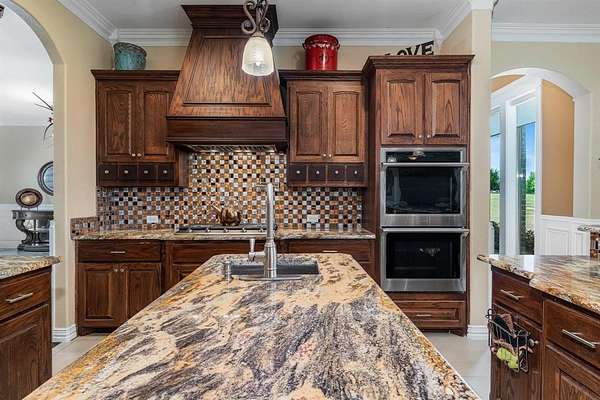 - Built-In Features, Cable TV Available, Chandelier, Decorative Lighting, Eat-In Kitchen, Flat Screen Wiring, Granite Counters, High Speed Internet Available, In-Law Suite Floorplan, Kitchen Island, Multiple Staircases, Natural Woodwork, Open Floorplan, Pantry, Second Primary Bedroom, Smart Home System, Sound System Wiring, Vaulted Ceiling(s), Walk-In Closet(s), Wet Bar