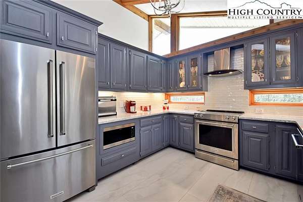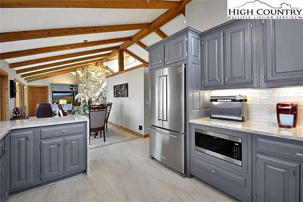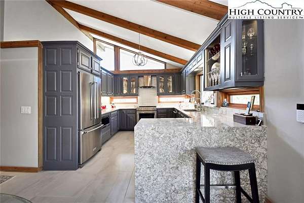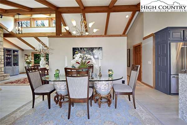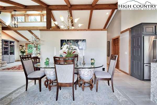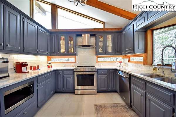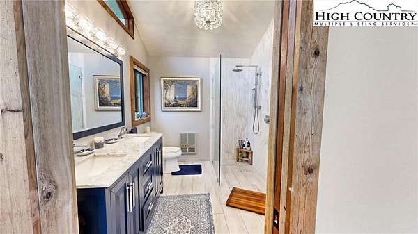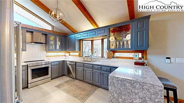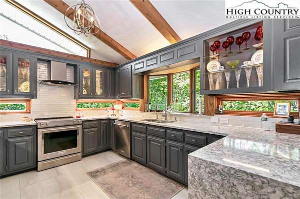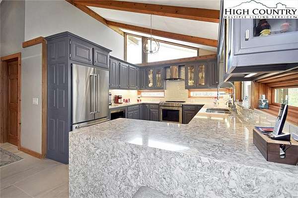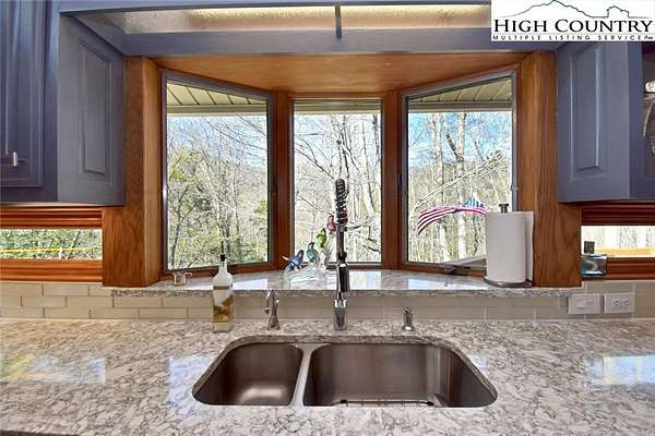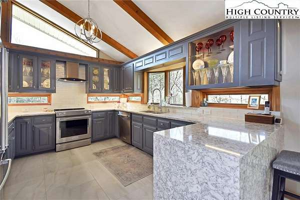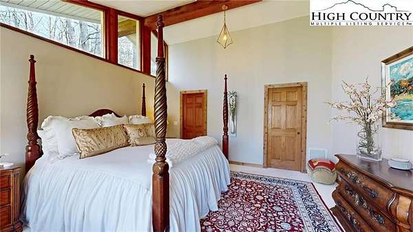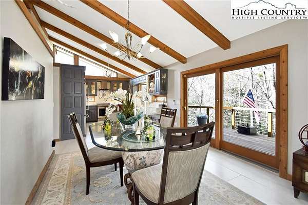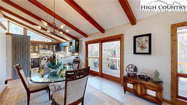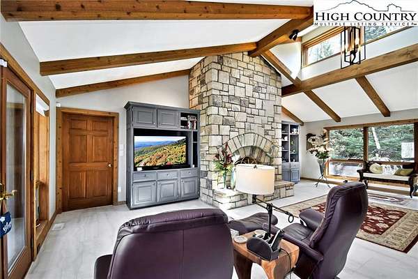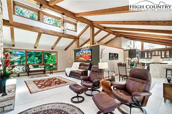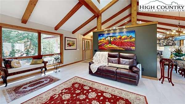 Nestled in the highly sought-after Tanglewood neighborhood of Linville, NC, this Home was architecturally designed as a three bedroom floor plan, and is nothing short of a masterpiece. Its elegant design is perfectly matched by its breathtaking surroundings. Perched on a gentle hill, this sanctuary overlooks a sprawling 1.89-acre tapestry of natural beauty, featuring 204 feet of enchanting river frontage along the Linville River, complete with picturesque waterfalls that add a touch of serenity. Every inch of this home has been painstakingly renovated, showcasing an exquisite upper level adorned with soaring cathedral ceilings. The gourmet kitchen is a chef's dream, while the expansive great room is flooded with natural light, providing calming and picturesque views through its grand windows. The master suite is a lovely oasis, complete with a luxurious ensuite bathroom. An adaptable room, currently serving as an office, can easily be transformed into a guest room, complete with its own bathroom, offering flexibility to suit your lifestyle needs. The lower level is equally captivating, featuring another inviting great room with a cozy fireplace, leading to the primary suite that opens onto a tranquil patio-- enjoy the soothing ambiance of the surroundings. Peace of mind is guaranteed with a state-of-the-art whole-house generator, a charcoal-filter water system, and an advanced security system. Elevated well above the river, this home stands resilient against flooding and has gracefully withstood Hurricane Helene without a hitch. Embark on a 3D tour to truly appreciate the meticulous craftsmanship and unparalleled charm of this extraordinary residence. This is a once-in-a-lifetime opportunity to own a home that is as unique as it is stunning. Don't let this treasure slip away.