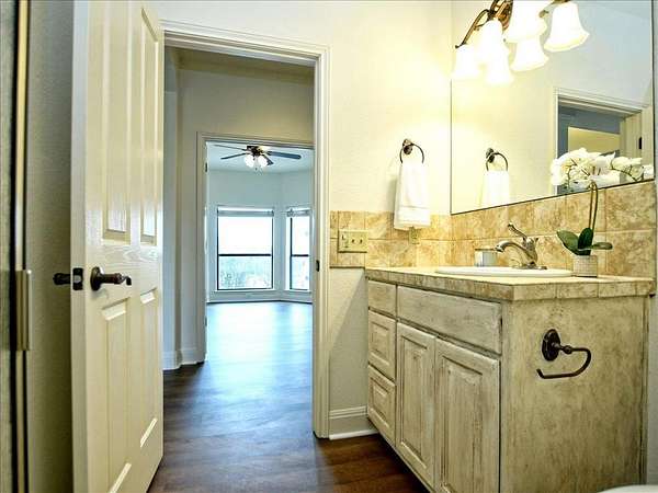 - Breakfast Bar, Ceiling Fan(s), Ceiling-High, Crown Molding, Double Vanity, Granite Counters, High Speed Internet, Kitchen Island, Multiple Dining Areas, Multiple Living Areas, No Interior Steps, Open Floorplan, Pantry, Primary Bedroom On Main, Tile Counters, Walk-In Closet(s)