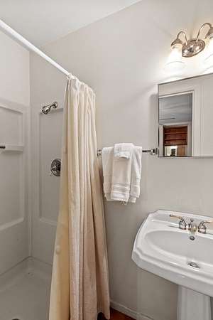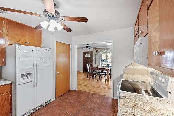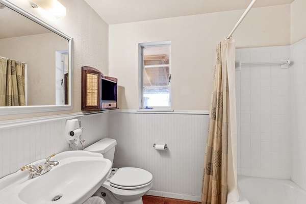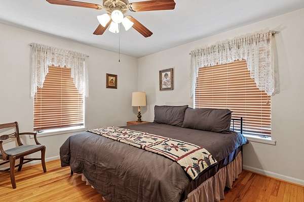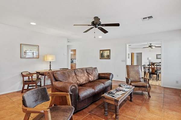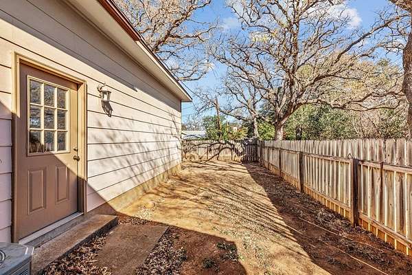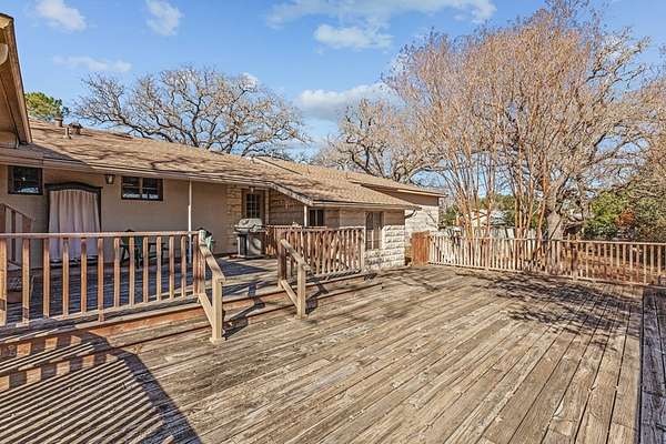 Located within a short walking distance to Main Street, this unique property spans three lots totaling 1.58 acres and is just a few blocks from excellent restaurants and shopping. The land features a small draw in the northeast corner, though it is not located in a flood zone per FEMA maps. The home showcases a historic exterior of rock, stucco, and Hardie siding and offers an open-concept layout connecting the great room, kitchen, and dining area--ideal for both everyday living and entertaining. Inside, you'll find gleaming wood floors complemented by tile flooring throughout, along with excellent potential for remodeling or customization. The kitchen is well appointed with granite countertops, a tile backsplash, tile floors, and solid wood cabinetry. The spacious primary suite includes a walk-in closet with built-ins, a large soaking tub, a separate shower, and direct access to the expansive back deck. Additional features include an oversized garage with extra storage, a large wood deck perfect for outdoor enjoyment, a working water well, mature oak trees and shrubs, and a security alarm system. The property is listed below assessed value, offering an exceptional opportunity in a highly desirable location.