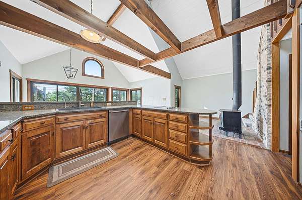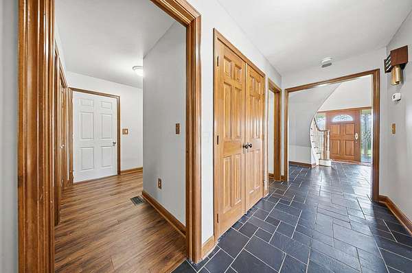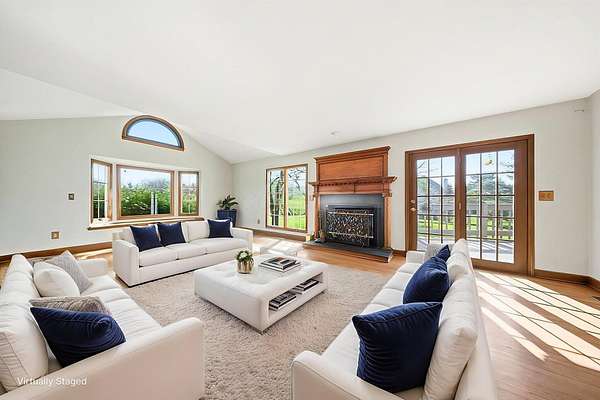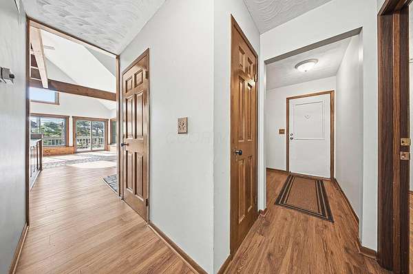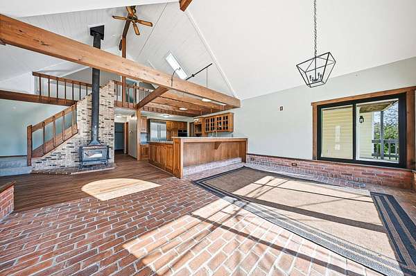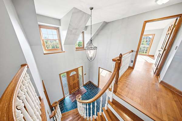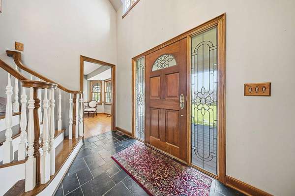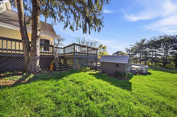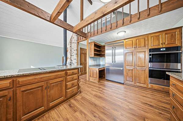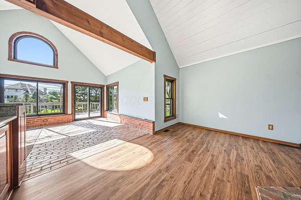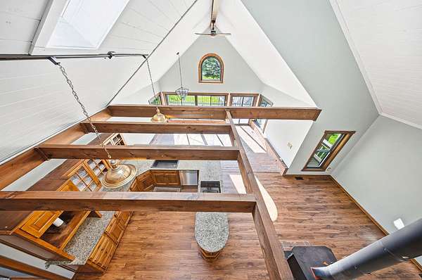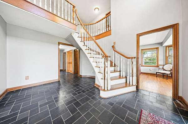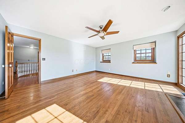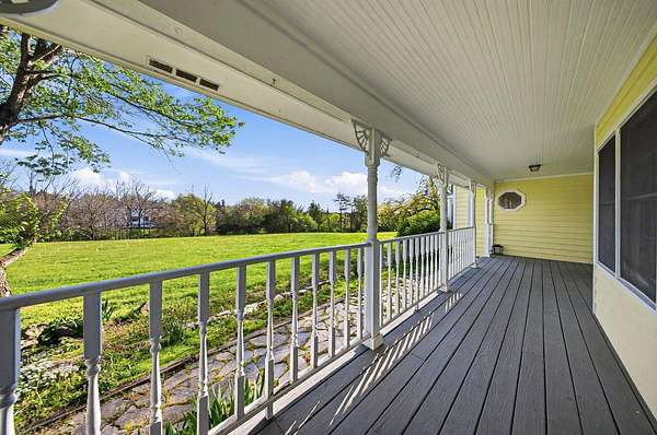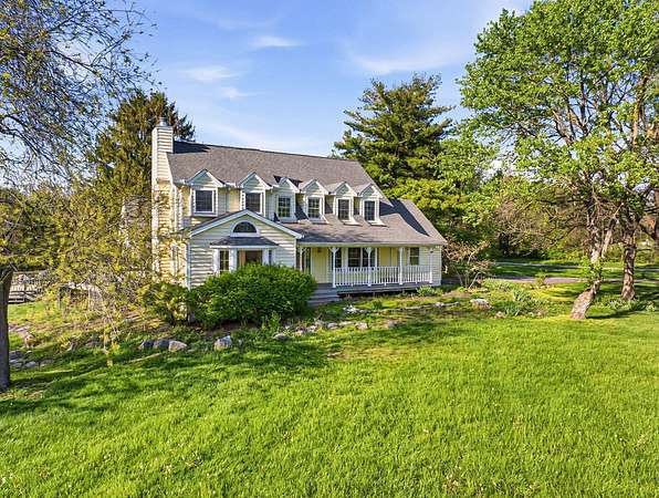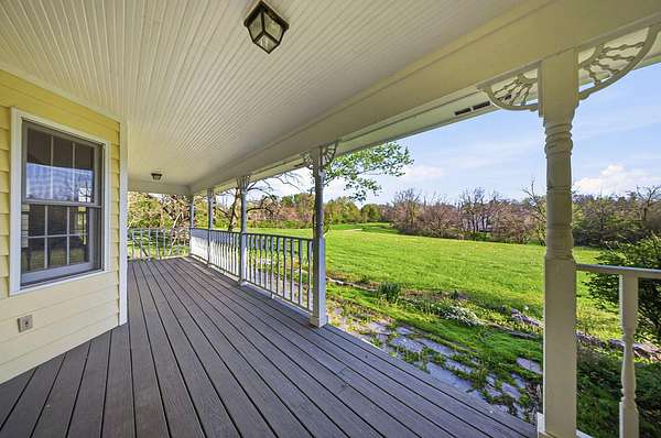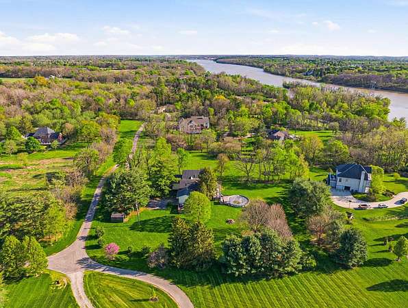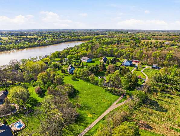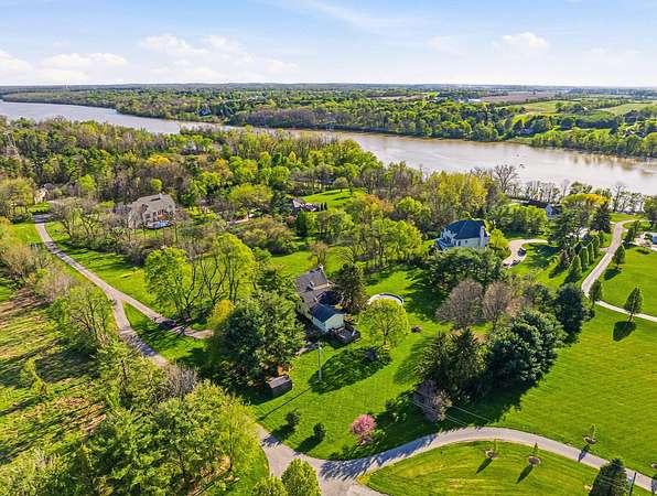 Gorgeous, custom Cape Cod with Victorian touches! 3,633 sq ft, 5 BD/3.5 BA nestled atop 3.465 park-like acres of flat & rolling land. Amish-built w/all-plywood construction & real cedar siding. Outside you'll find stunning ridge-top Scioto River views, mature shade trees, and a lemonade front porch. Multi-tier decks overlook the pool & sweeping river views. Step inside through a dramatic vaulted foyer featuring original black slate floors and a grand winding staircase. Off of the foyer, you'll find an office with custom built-in cabinetry and the entrance to the spacious living room. The bright and airy living room offers a scenic bay window, a striking slate and custom woodwork mantle framing the fireplace, and french doors to the deck outside. Formal, yet open, dining room also includes french doors leading to the deck. The light-filled kitchen features cherry cabinets and granite countertops. A vaulted ceiling, skylight, and exposed beams gives the room an expansive feel. Newer Jenn-Air double ovens and glass cooktop with a large capacity, built-in Thermador fridge. Additional pantry storage is offered in the entryway to the first garage. The breakfast bar overlooks a brick-floor hearth room with large, newly updated windows and access to the deck via sliding door. Kitchen leads to first floor bedroom with full bathroom as well as laundry room and access to second garage. Located upstairs are 4 bedrooms and two full bathrooms. Primary bedroom has en suite full bathroom with walk in closet and soaking tub, as well as private deck and wood burning fire place. Large walkout basement features over 1500 sq ft with a shop room and plenty of storage space. City water with private well for outdoor plumbing needs. Numerous upgrades including electrical panel, water heaters, windows and much more in A2A. Gorgeous, inviting home that is a joy for entertaining and holidays, all in a beautiful park-like setting. Too much to list - this is a must-see propert