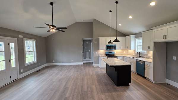 Welcome home to your new construction retreat! Move in to our 3 bedroom, 2 bathroom home on one level with an open floor plan, vaulted ceilings, and a gorgeous view of country living. Enjoy your spacious and level 1.91 AC+/- property. The house features custom built white cabinets, granite counter tops, a large kitchen island that's perfect for entertaining, stainless steel appliances, LVP flooring throughout, and a separate laundry room. Schedule a showing today before it's gone!