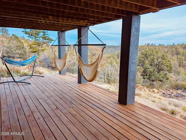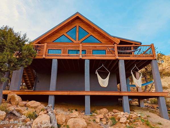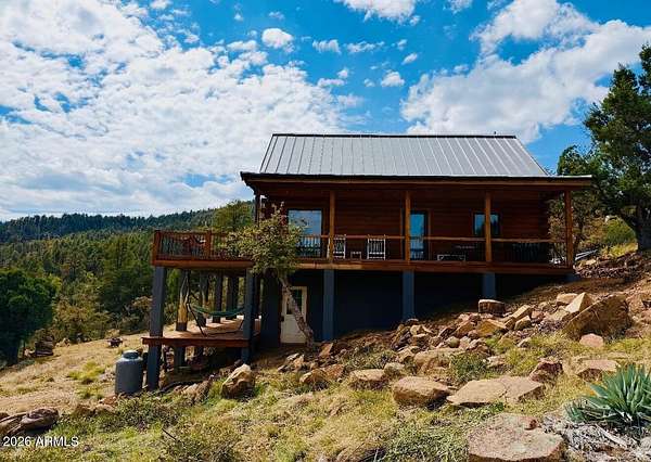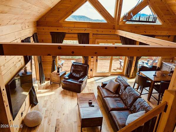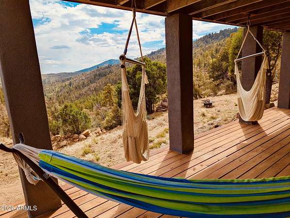 Welcome to your little slice of heaven in the Bradshaw Mountains.Just two hours from Phoenix, this stunning two-year-old cabin was built from the ground up on a private 2-acre lot -- with breathtaking views of the valley stretching out below. Surrounded by pines and wide-open skies, you'll have every comfort of home at your fingertips. The open floor plan with loft, dual-pane windows, and all-stainless steel appliances make this feel like a true retreat. Step outside onto the expansive decks for your morning coffee, evening sunsets, or simply some well-earned front-porch sitting.Plenty of room for entertaining, BBQ's or Picnic's. With 2 bedrooms and 1.5 bathrooms, this fully turnkey property lets you escape the desert heat in summer and wake up to fresh mountain snow in winter.