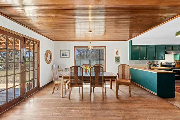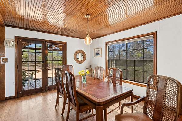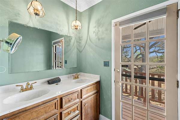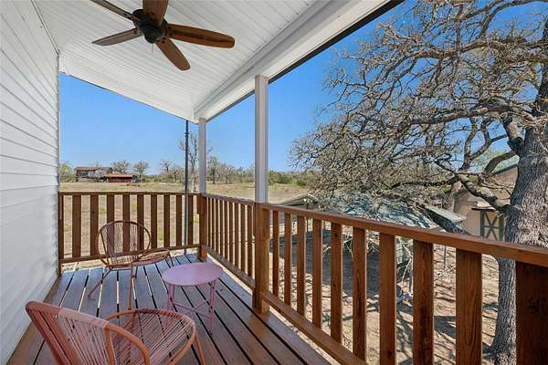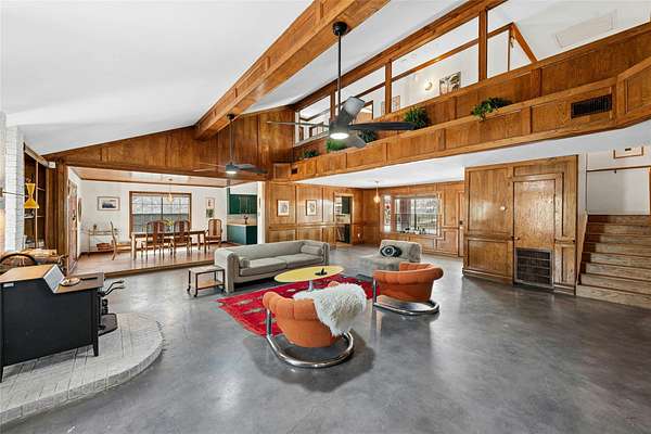 If you've been craving something with soul... this is it. 5050 FM 535 is giving full 1970s energy in the best way: warm wood tones, eye-catching architectural design and textures you don't see anymore (especially out here). It's the kind of home that feels collected over time, not cookie-cutter. Inside, you're welcomed by floor-to-ceiling wood paneling, built-in shelving, and design details that feel intentional to the era. It's warm, it's layered, it's inviting. The kitchen has been refreshed with wood countertops, an updated backsplash, and new fixtures. The hardwood floors were updated recently. Upstairs, the primary suite feels like its own retreat. There's plenty of room for a reading nook or cozy sitting area, plus access to a private balcony overlooking the backyard. And the primary bathroom? You'll notice details that preserve the time period, like the baby blue tile and clawfoot tub moment. Step outside and take in the expansive 2.45 acres. A covered back deck made for slow mornings with coffee, oversized garden beds ready for harvesting your veggies and herbs, and a chicken + duck coop for anyone leaning into a little homestead lifestyle. Two large sheds convey (one with electricity), giving you space to create, store, or tinker. All of this, tucked into a quieter lifestyle while still being about 35 minutes to Austin when you crave city energy. This home has a ton of personality, space to grow, and just the right amount of charm.